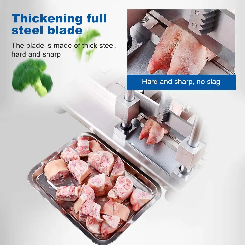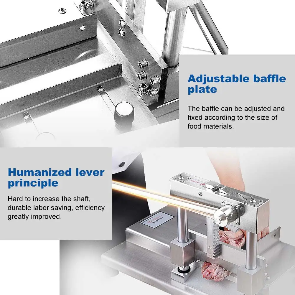 Материал нержавеющей стали: нержавеющая сталь толщиной 2,5 мм, более устойчивая для резки костей. Острый и прочный, чистый и аккуратный, гладкий разрез кости. Стойка и шестерня: вырез плоский, меньше мусора. Без шумовых эффектов. Гуманный Рычаг Принцип: жесткий и большой вращающийся вал, прочный и экономичный, значительно улучшенная эффективность. Моющийся машинный корпус: корпус машины изготовлен из нержавеющей стали и может быть промыт водой напрямую, более гигиеничный. После мытья не забудьте вытереть немного масла На лезвиях. Устойчивый корпус машины: вес тела 22,65 кг, устойчивый и мощный, режущие кости не соскальзывают, более экономичный.