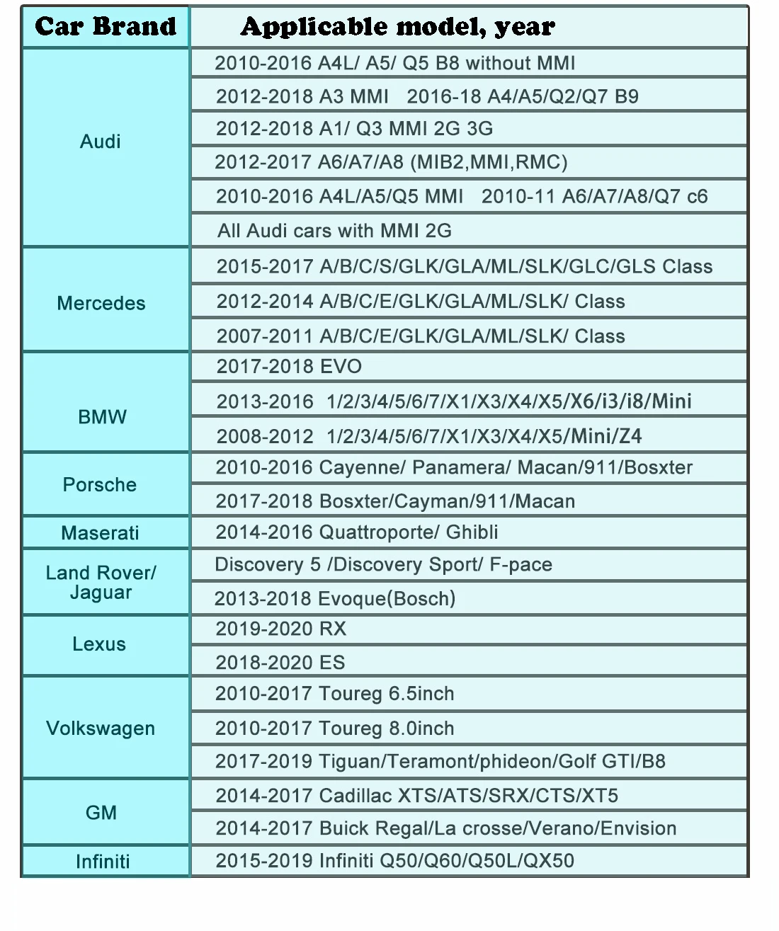 В1: Может ли моя машина работать с вашим продуктом? A1: пожалуйста, сообщите нам тип вашего автомобиля и год производства, пожалуйста, отправьте нам фотографии с экраном дисплея вашего автомобиля и контрольной пеналью. В2: Легко ли установить? Как установить? A2: Да, это plug ang play. Если вы можете найти магазин repaire или carshop для установки будет лучше. Если вы сделай сам, пожалуйста, свяжитесь с нашей службой поддержки. Вопрос 3: какие у вас гарантии, если ваше устройство не может работать с моей машиной? Ответ 3: все, пожалуйста, Aliexpress соответствии с требованиями о возврате. (но если продукты повреждены самостоятельно, мы не принимаем возврат
