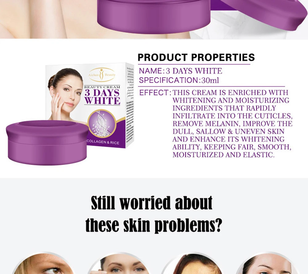 Этот Крем обогащен отбеливающими и увлажняющими ингредиентами, которые быстро проникают в кутикулы, для удаления меланина, улучшения тусклой, шелушащей и неровной кожи и повышения ее отбеливающей способности, сохраняя гладкость, увлажненный и эластичный.