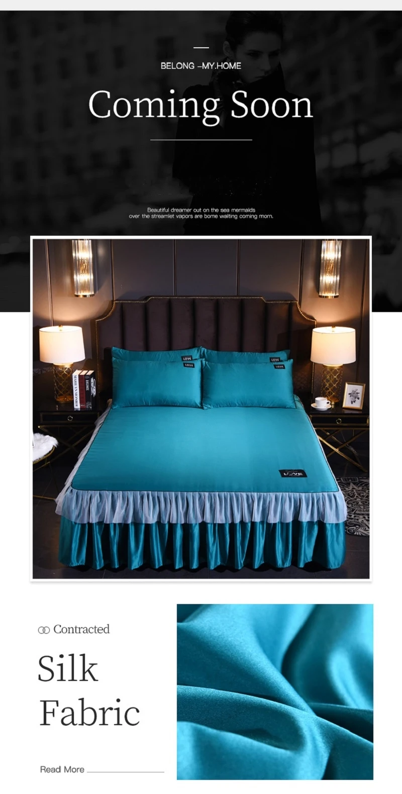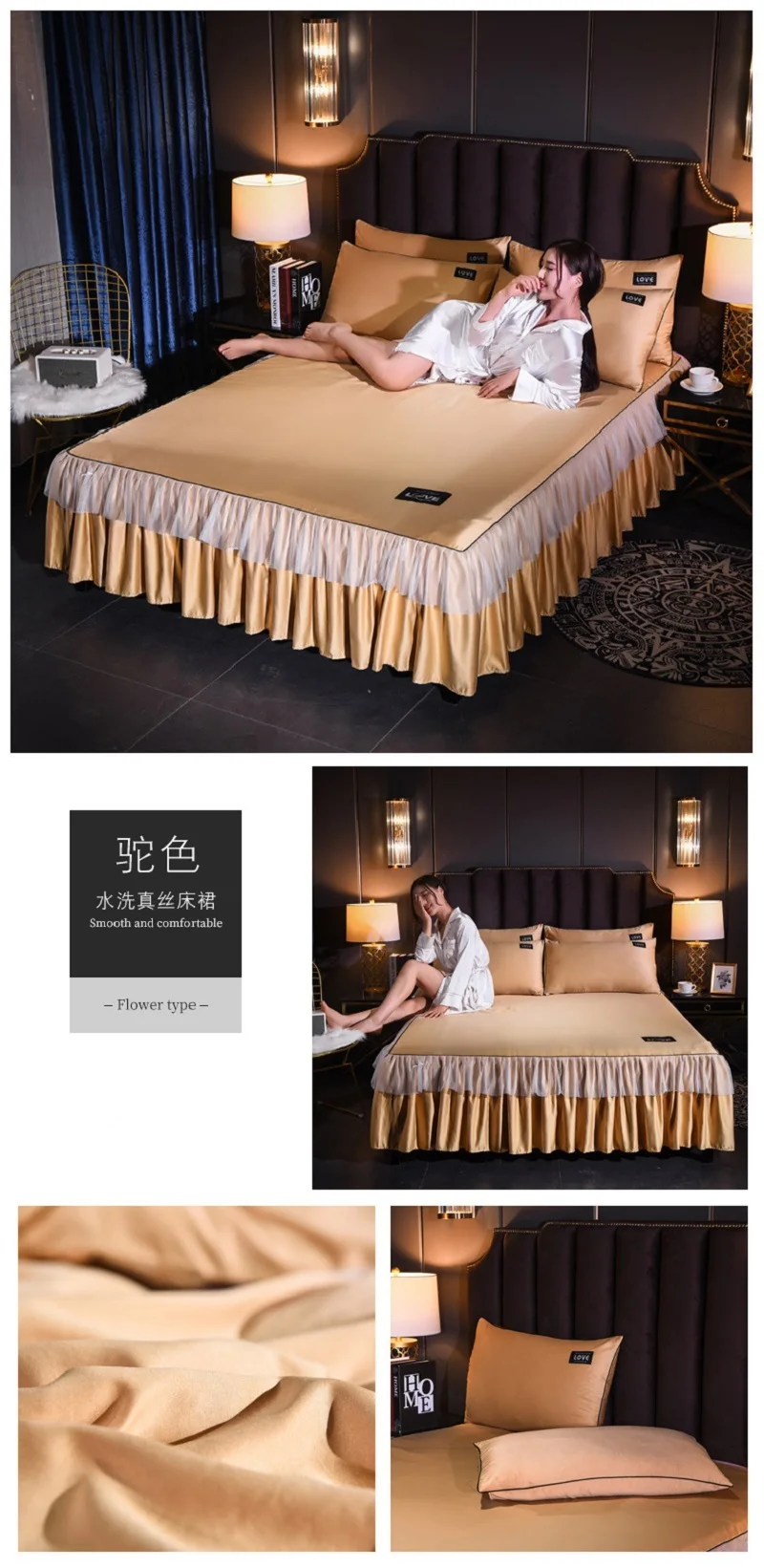 Простыня для девочек, Корейская шелковая простыня, однотонная наволочка для матраса, свадебное постельное белье принцессы для дома