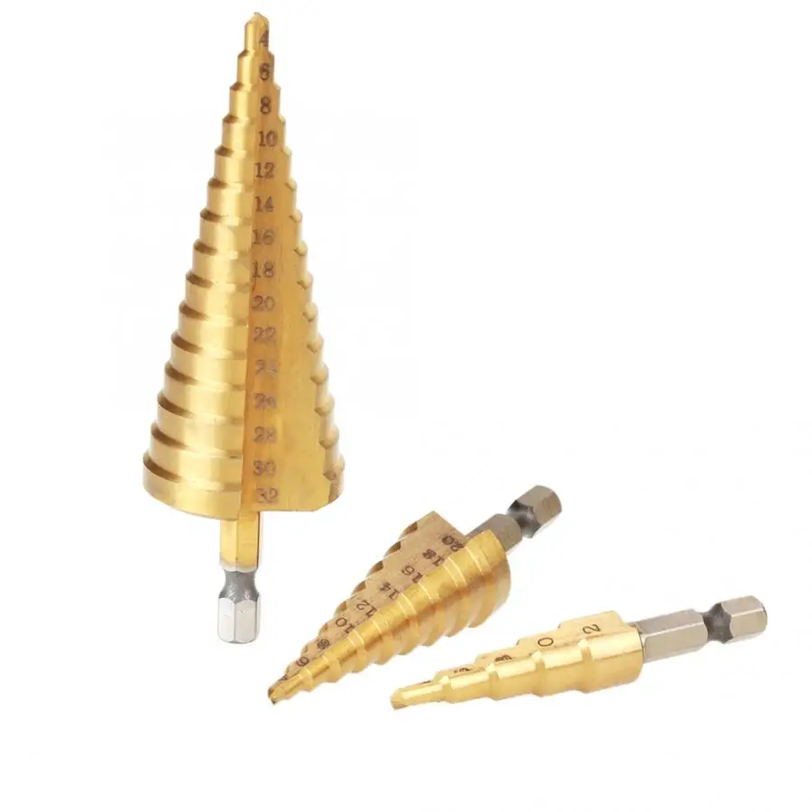 Ступенчатое сверло, 3 шт. высокоскоростное стальное ступенчатое конусное сверло с шестигранным хвостовиком титановое покрытие сверло 4-12/4-20/4-32 мм