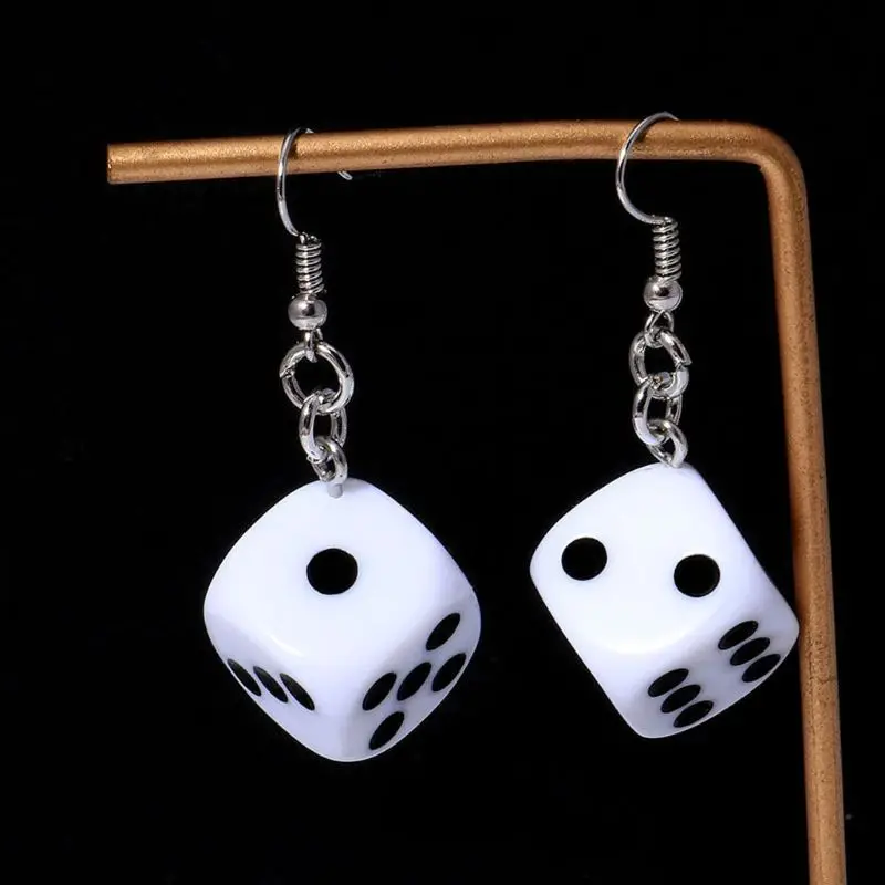 Веселые кости Висячие серьги акриловые белые кубики 3D кубические кости очаровательные висячие серьги