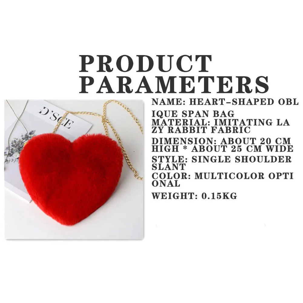2020 новая женская сумка в форме сердца, плюшевая сумка через плечо с сердечками, подарок на день Святого Валентина Технические характеристики:Размеры таблицей: