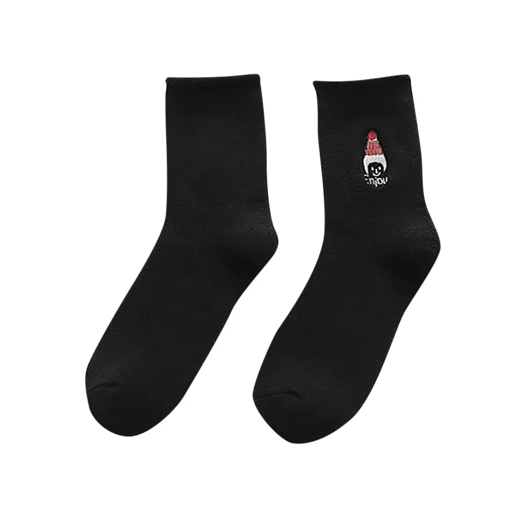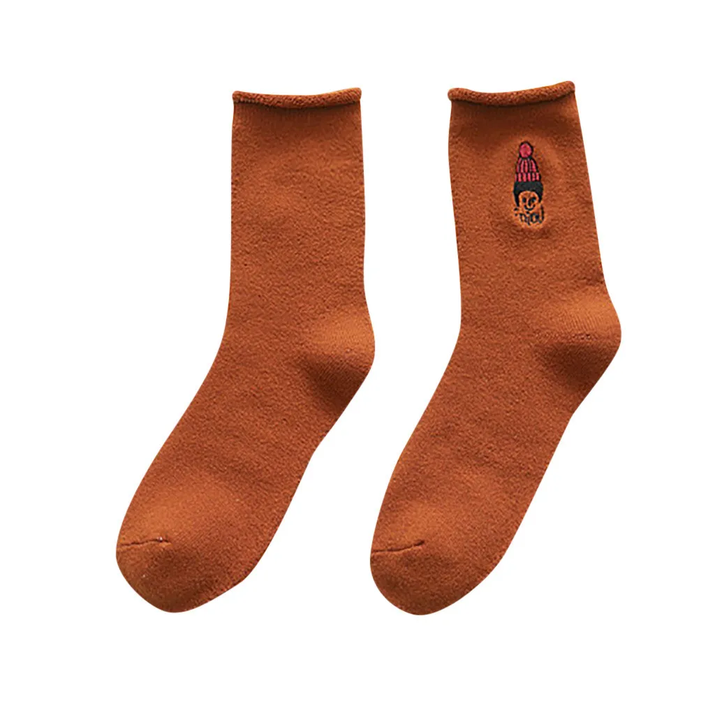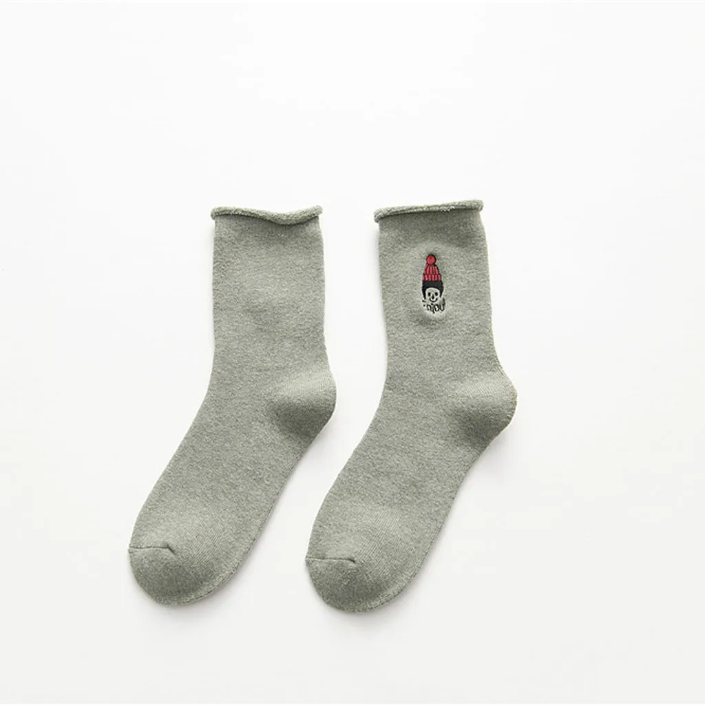 Женские модные однотонные теплые хлопковые носки с вышивкой