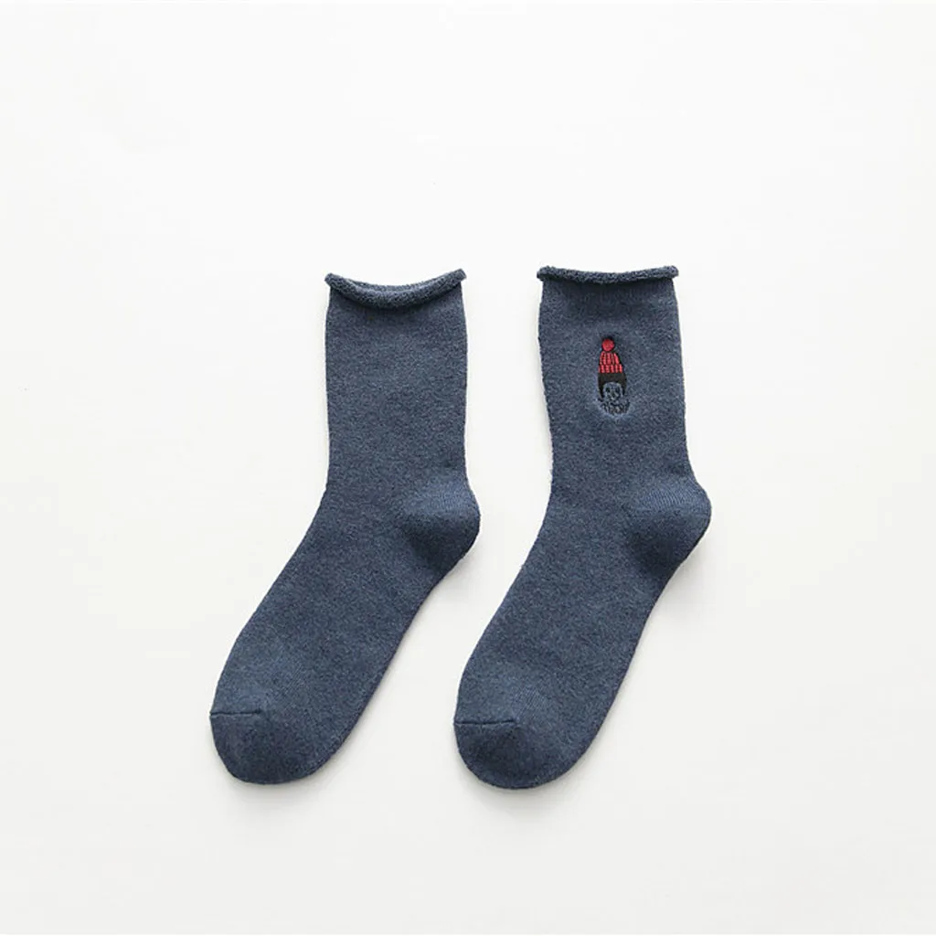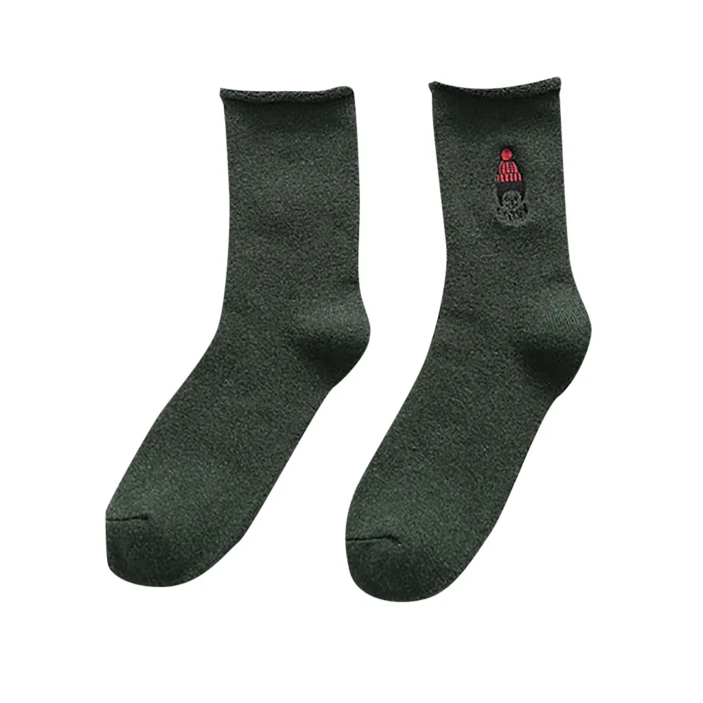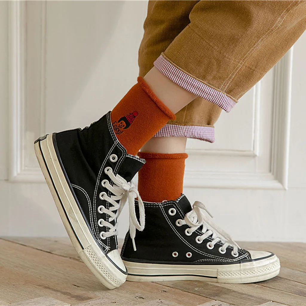 Женские модные однотонные теплые хлопковые носки с вышивкой