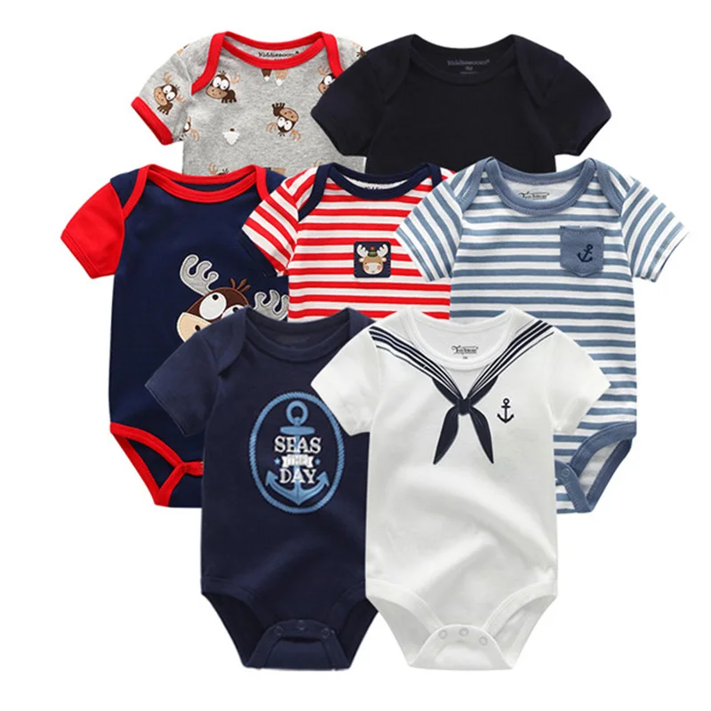 2019, 7 шт./лот, хлопковая одежда для маленьких мальчиков от 0 до 12 месяцев, комплекты одежды унисекс, одежда с короткими рукавами для маленьких девочек, летняя Roupa de bebe![]()
