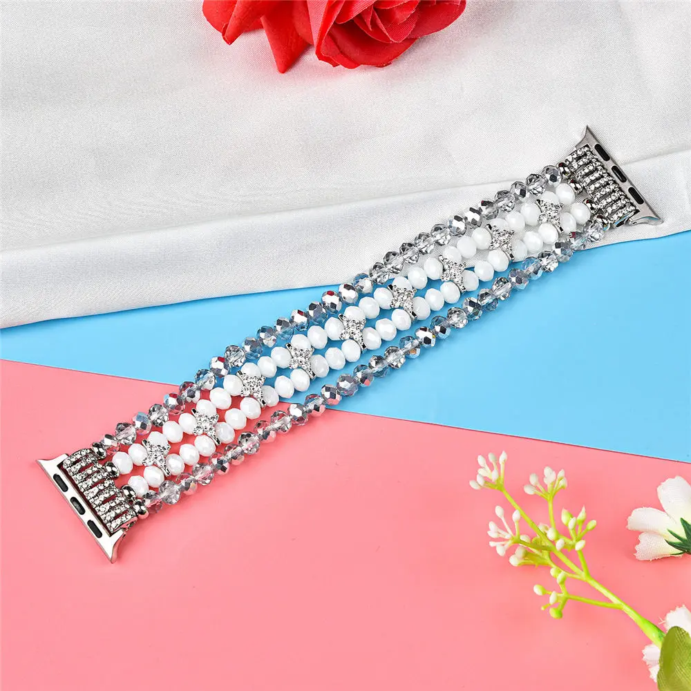 Женский браслет из натурального жемчуга для Apple Watch iWatch, эластичный ремешок для Apple Watch 38 мм 42 мм 40 мм 44 мм, ремешок