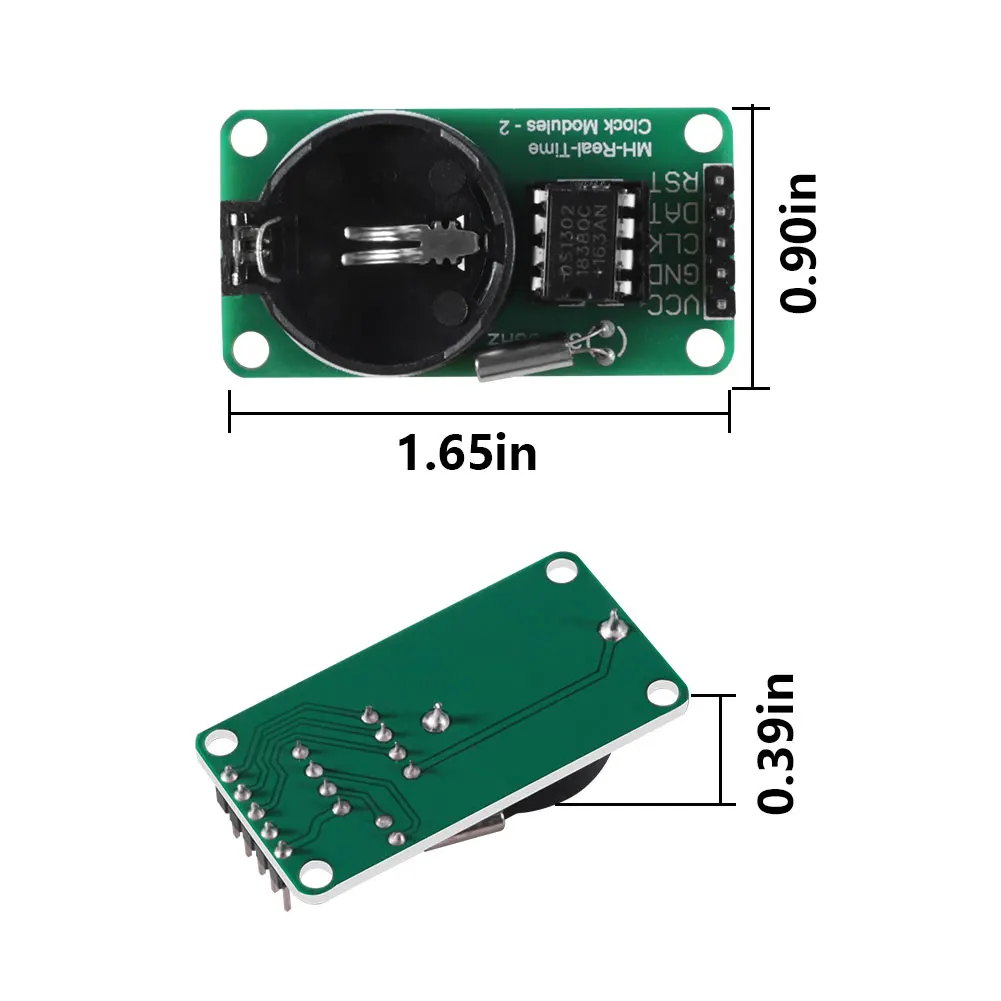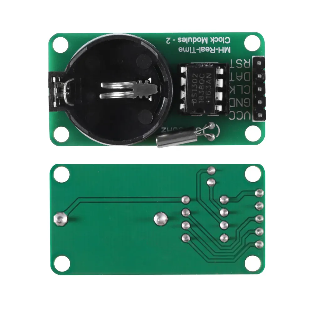 Описание: DS1302-это чип зарядки часов из Далласа, который содержит часы/календарь в реальном времени и 31 байт статической оперативной памяти для связи с микроконтроллером через простой последовательный интерфейс. Часы/календарь в режиме реального времени обеспечивают секунды, минуты, часы, дни, недели, месяцы, годы информации, количество дней в месяц и Високосный год количество дней может быть изменено автоматически. Время работы часов может определяться индикацией AM / PM в формате 24 или 12 часов. (1) RST reset (2) I / O data lines (3) SCLK serial clock. (1) RST reset (2) I / O data lines (3) SCLK serial clock. Часы/RAM чтение/запись данных в байте или до 31 байта группового общения символов. Потребление энергии DS1302 очень низкое для сохранения данных и информации о часах, когда мощность меньше 1 мВт Особенности: Часы в режиме реального времени с 2100 могут быть рассчитаны до секунд, минут, часов, дней, недель, месяцев, лет способности, а также високосный год регулировки 31 8-битный временного хранения данных Оперативная память Режим последовательного ввода/вывода делает вывод меньше Широкий диапазон рабочего напряжения 2,0 V Рабочая сила тока 2,0 V, меньше, чем 300nA Часы чтения/записи или данные RAM, Есть два способа передачи одного байта передачи и многобайтовый режим передачи символов группы 8-pin DIP посылка или опционально 8-pin SOIC посылка в соответствии с поверхностного монтажа Простой 3-х проводное интерфейс Совместимость с TTL Vcc = 5V Дополнительный диапазон промышленной температуры-40 + 85 Двойной источник питания для основного источника питания и резервного питания Параметры модуля часов в реальном времени DS1302: 1.PCB для одной панели, размер: 43 мм * 23 мм 2. С 4 отверстия для позиционирования, диаметр 3,1 мм 3. Запасная батарея для аутентичной небесной сферы CR2032, напряжение 3 В, ток 260 мА · ч, неперезаряжаемая батарея. Теоретическое время хранения данных более 10 лет! 4. Кристалл 32,768 кГц, японский Импортированный кристалл, соответствующая Емкость 6 пФ, размер 2*6 мм 5.DS1302 8-контактный подключаемого модуля большой чип, чип ниже IC Блок, легко заменить и подключите чип 6. Модуль Рабочее напряжение совместим с 3,3 V / 5V и 5V и 3,3 V однокристальная соединение 7. Рабочая температура: 0 ° --- 70 °