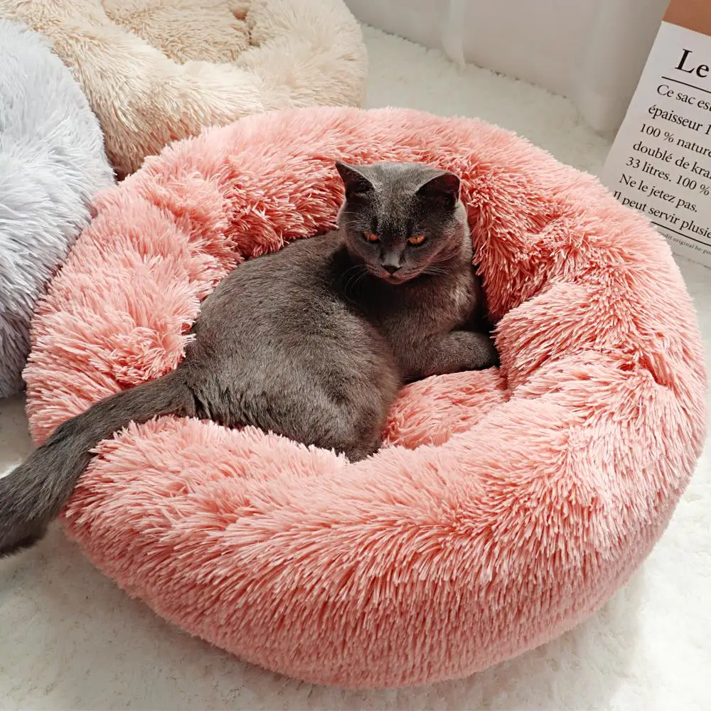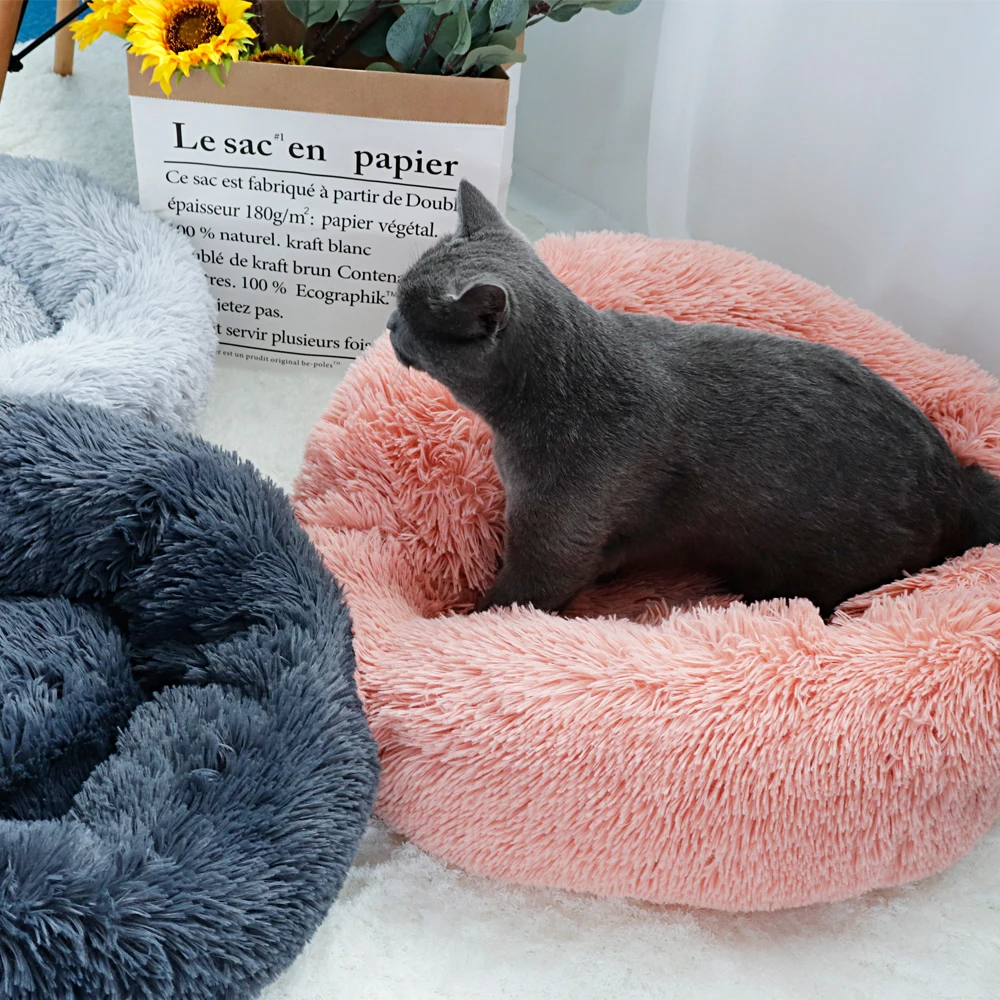 Круглые плюшевые кошечки для кошек зимние теплые спальные коты гнездо Мягкие Длинные Плюшевые корзины для собак Подушка для домашних животных Портативные товары для домашних животных