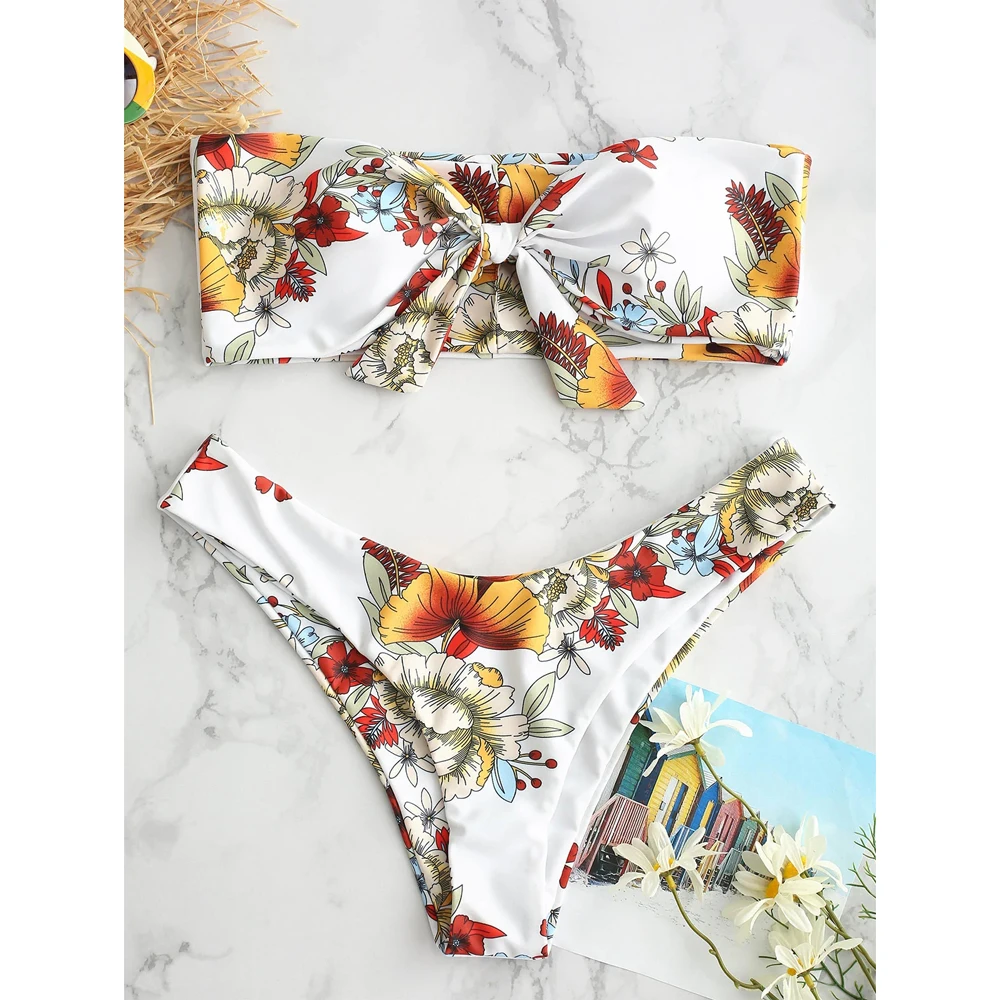 Новинка 2021 женское бикини с листьями пуш-ап купальник-бандо женская пляжная