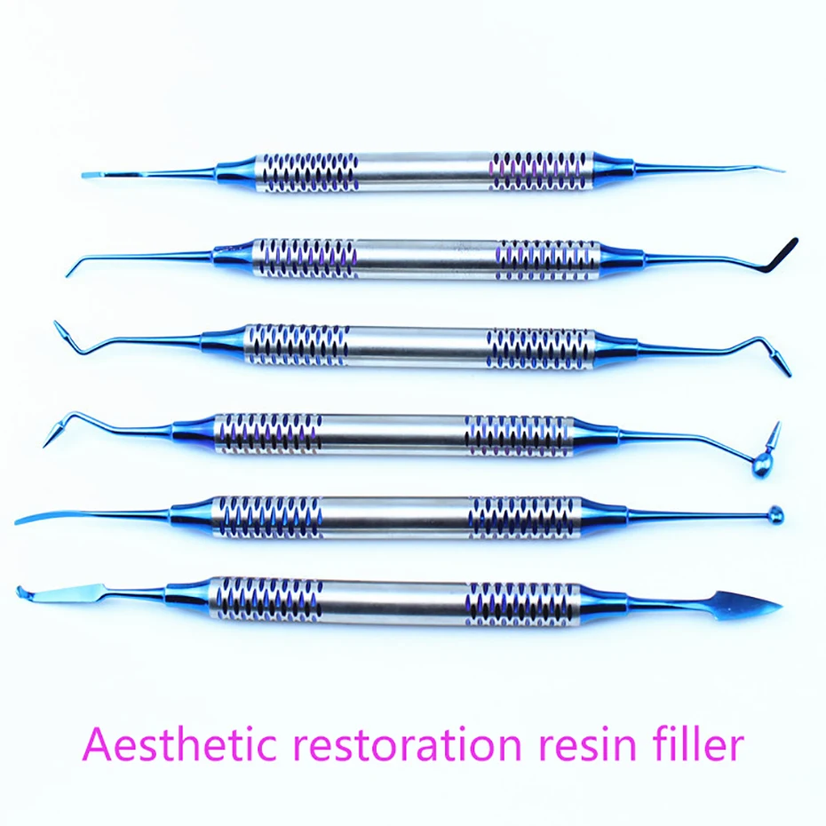 6 шт зубная композитная Смола Заполнения шпатель Титан покрытием головы смолы наполнитель набор Толстая ручка восстановления набор стоматологических инструментов