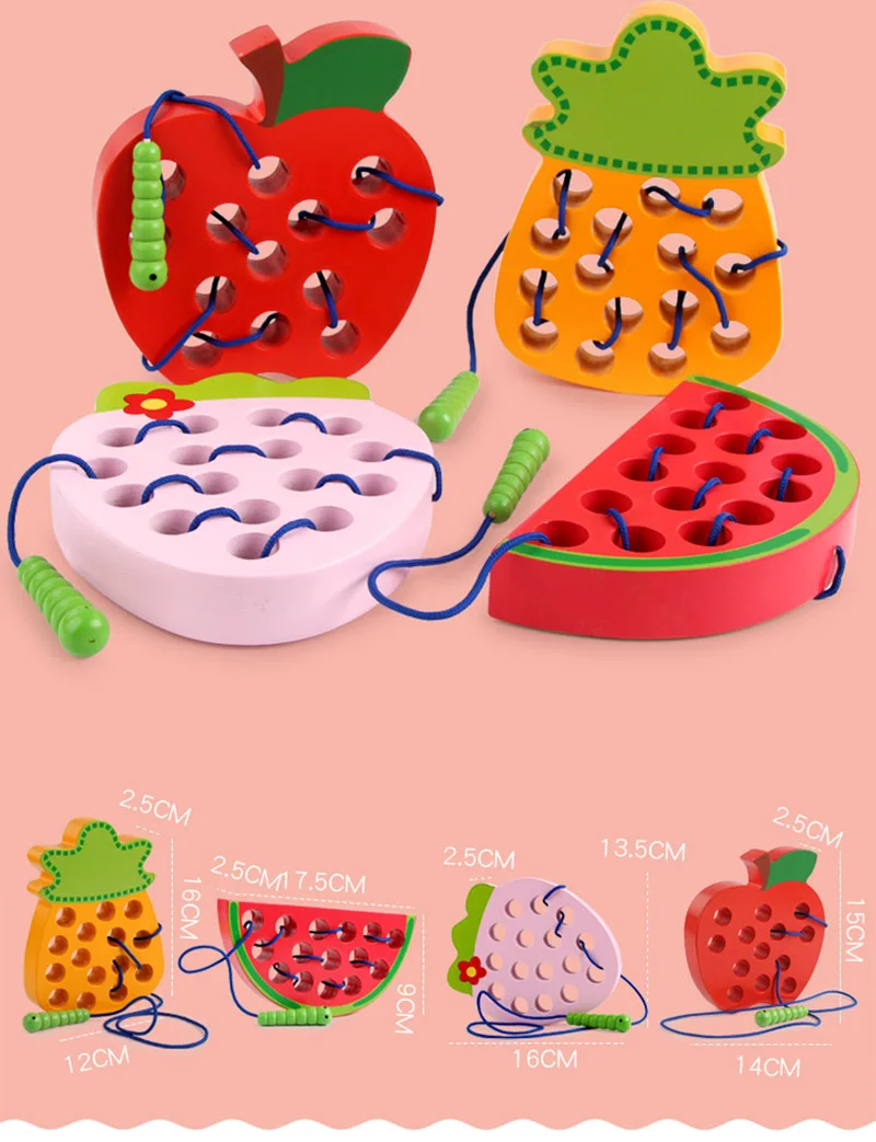 Детские Монтессори Развивающие деревянные игрушки Веселая нить деревянная игрушка форма познания червь едят яблочный сыр Раннее Обучение математическая игрушка