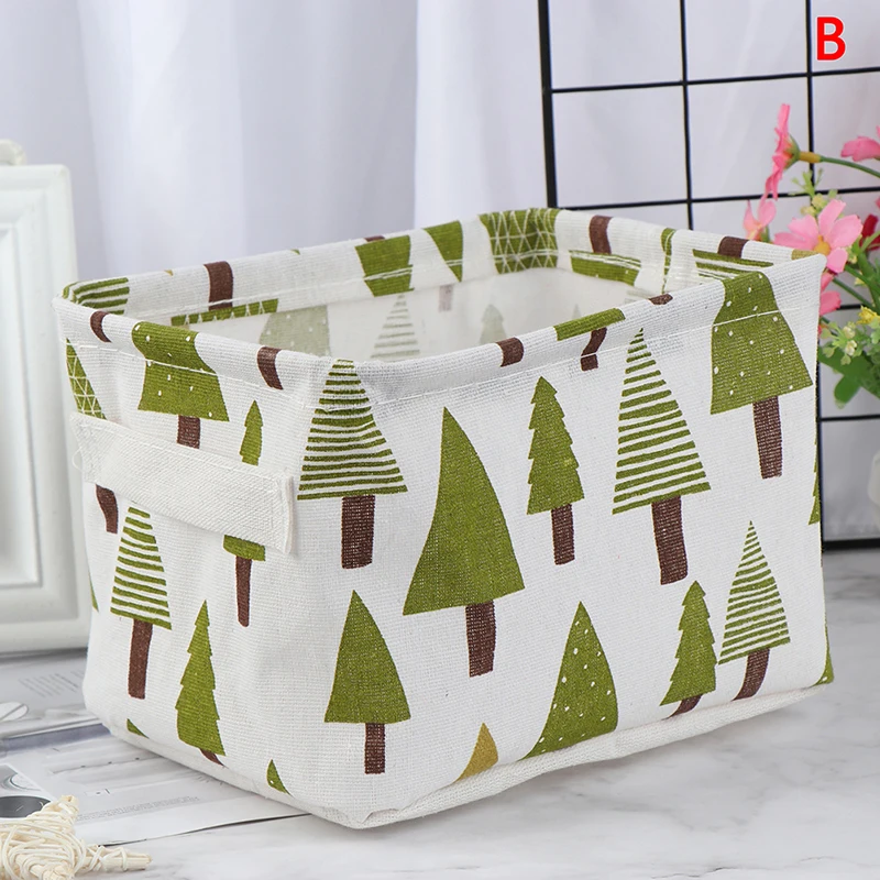 Настольная корзина для хранения изготовлена из хлопка и льна с красивым рисунком.