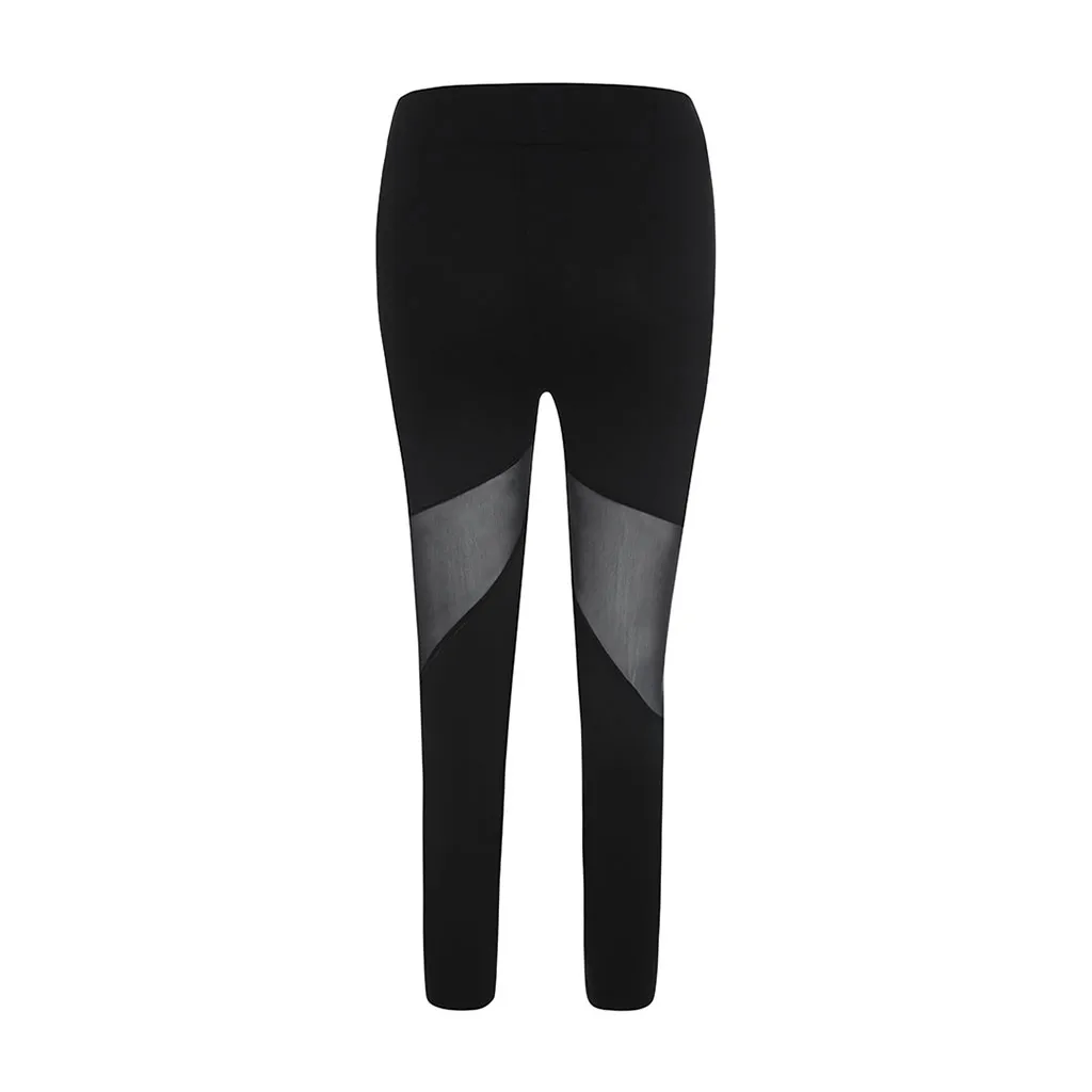 Женские обтягивающие леггинсы с дырочками для фитнеса, штаны для йоги, женские укороченные сетчатые черные брюки с высокой эластичной талией