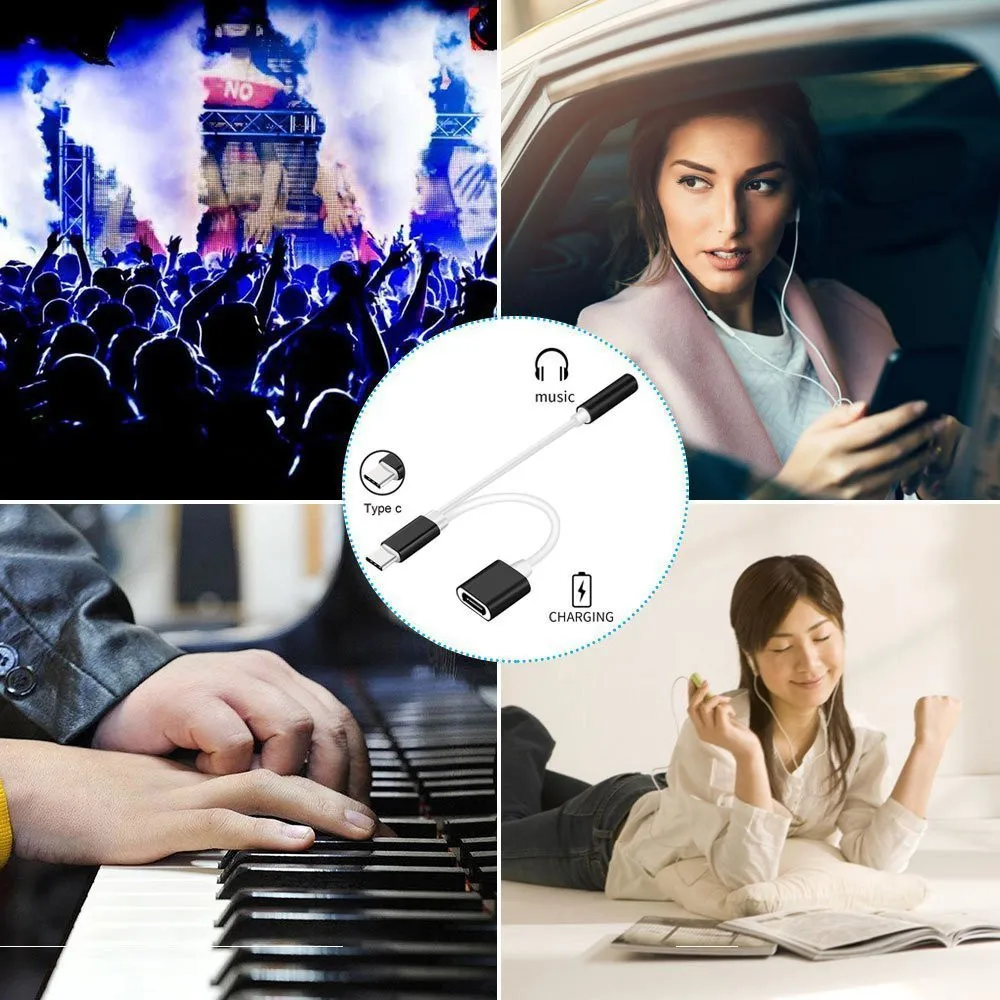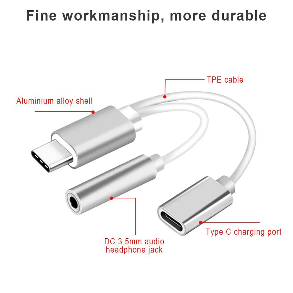 2в1 usb type-C до 3,5 мм разъем AUX аудио сплиттер конвертер адаптер + зарядный кабель