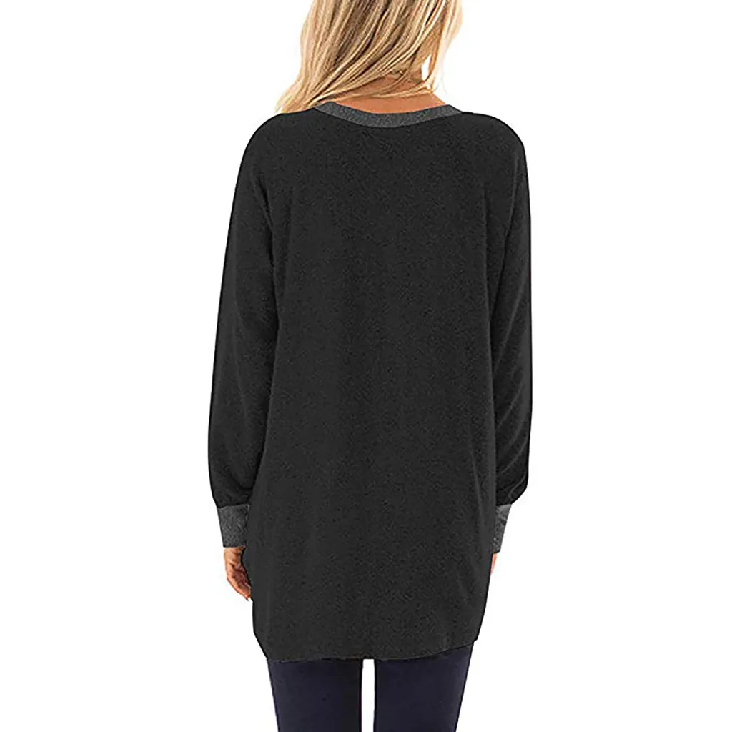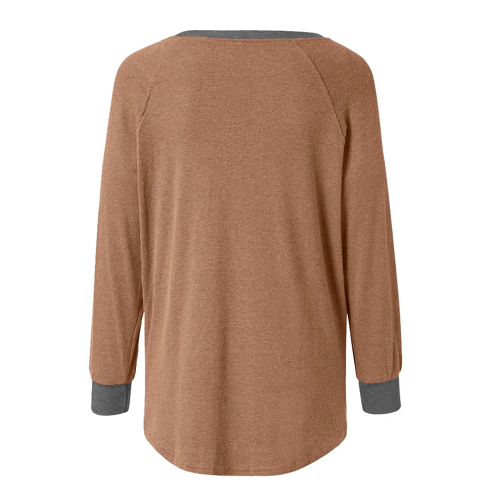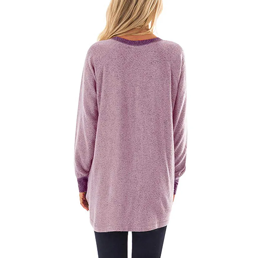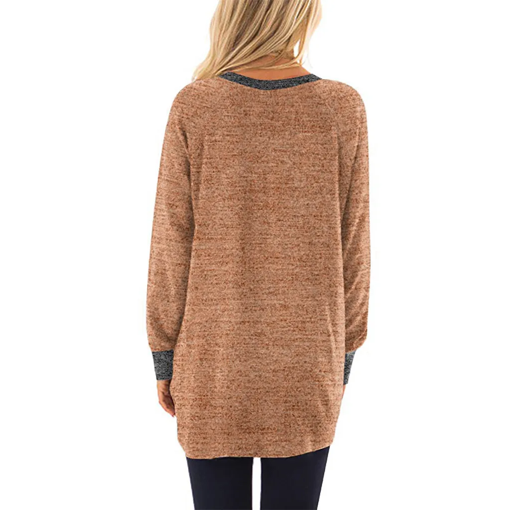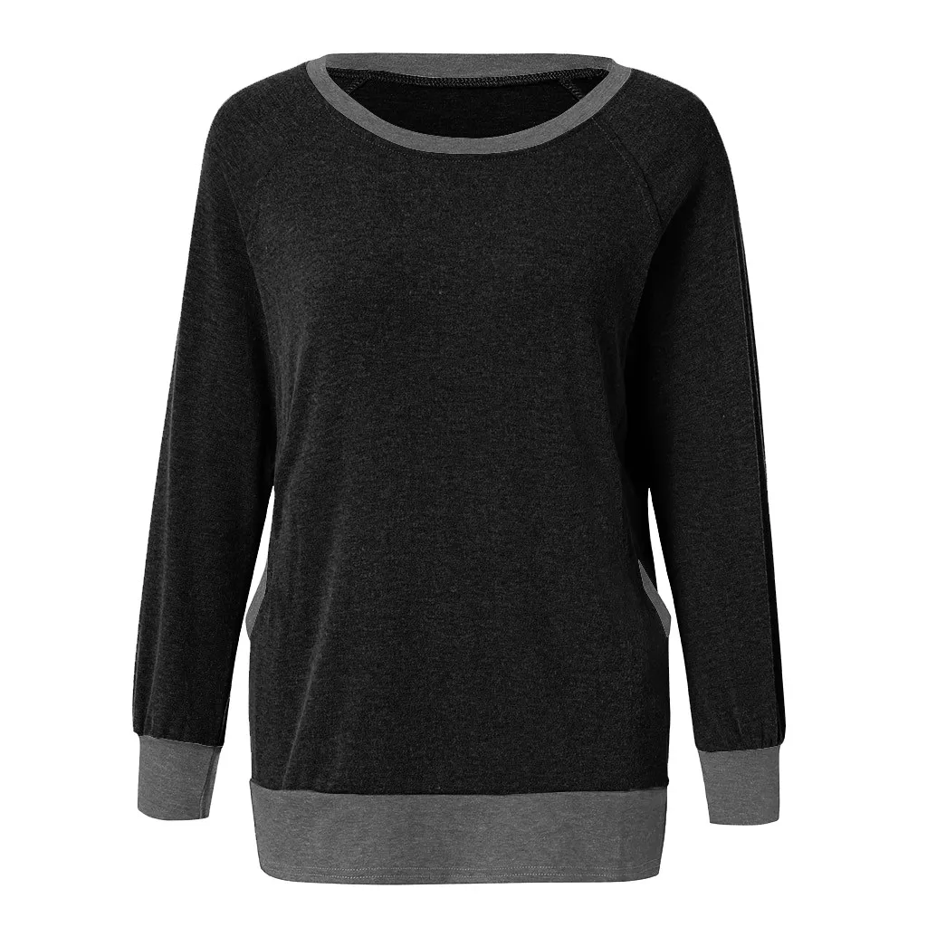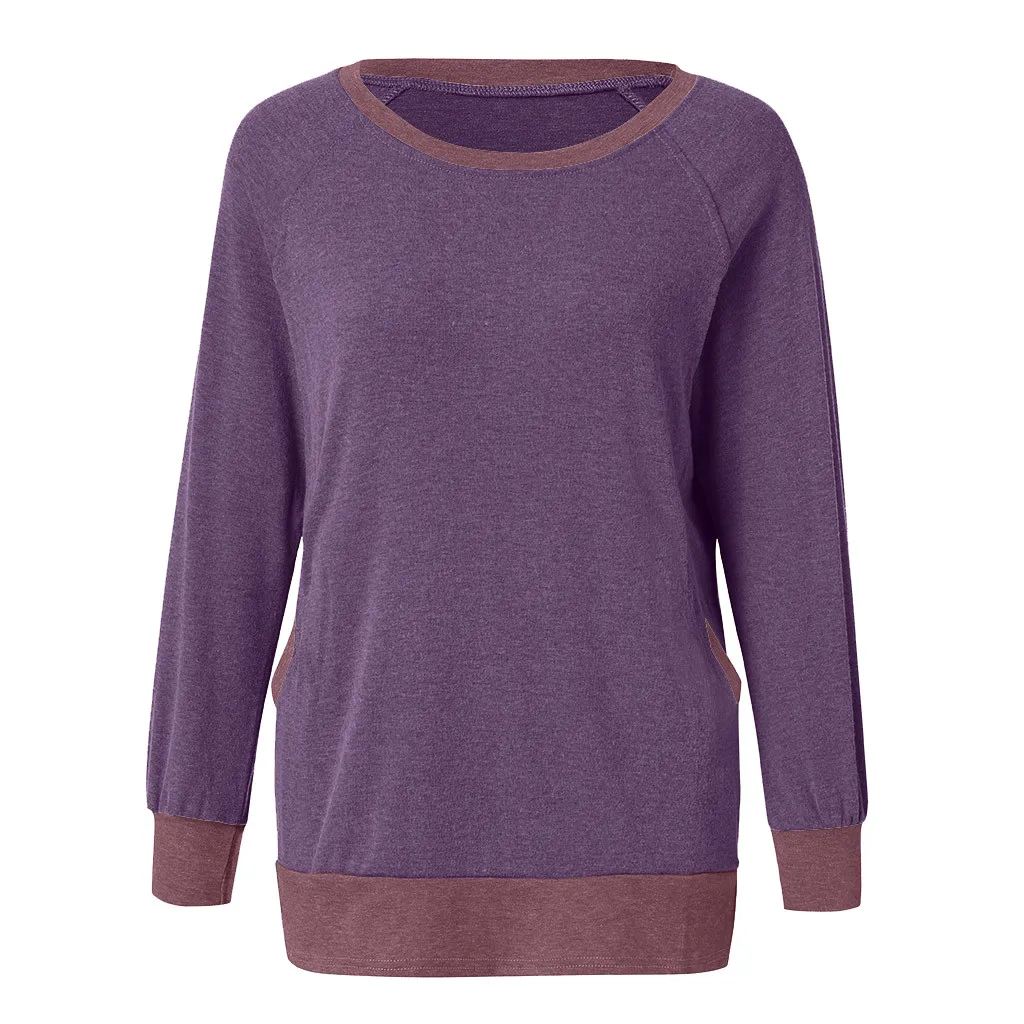 Женская цветная футболка с круглым вырезом и карманом с длинными рукавами; Толстовка; Топы; Блузка