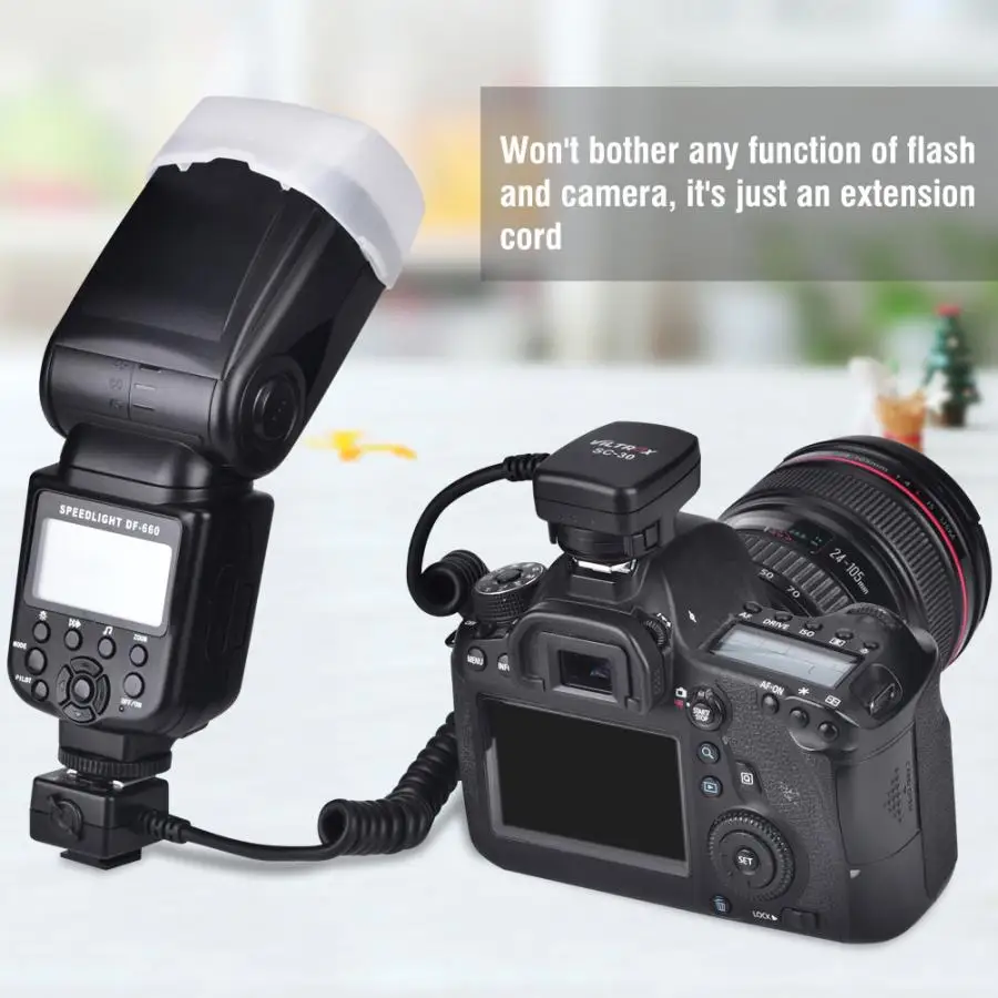 Шнур отличается высокой проводимостью и точно выполнен, что обеспечивает идеальную посадку для вспышки Nikon TTL.