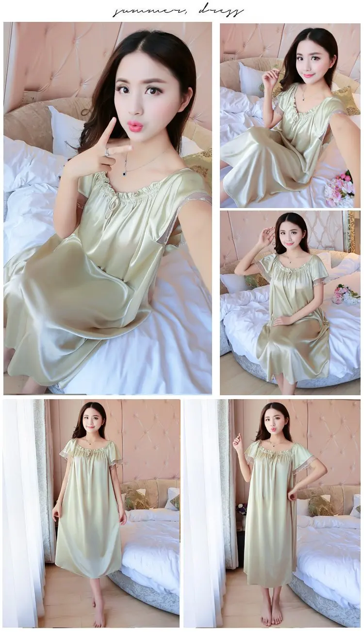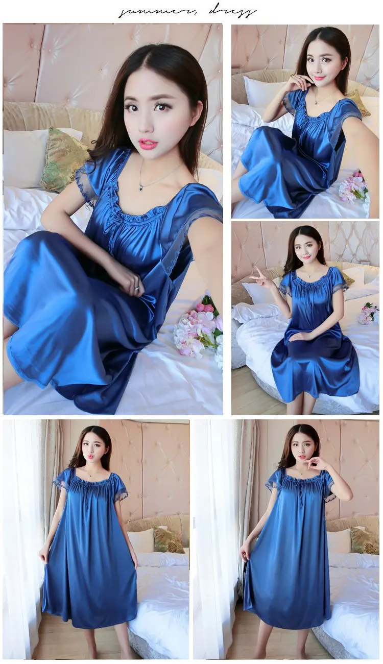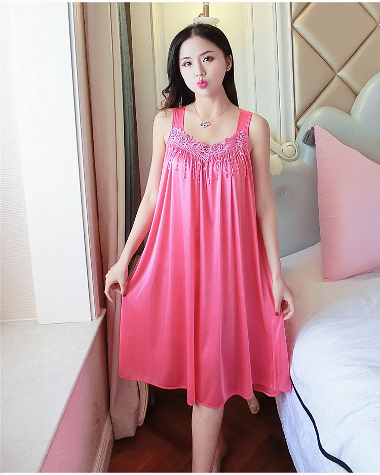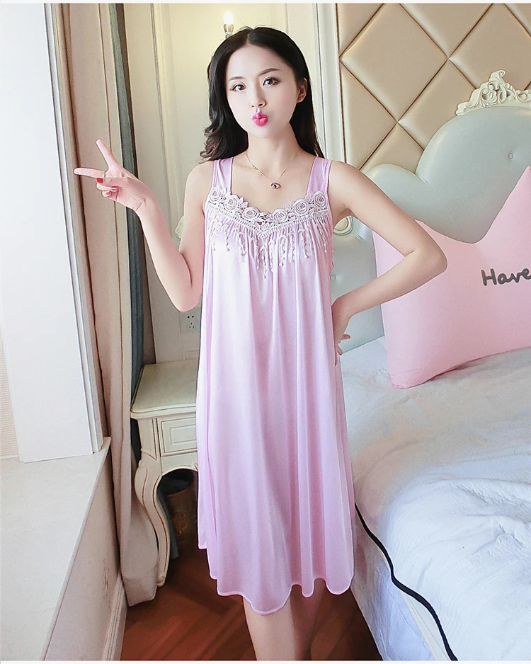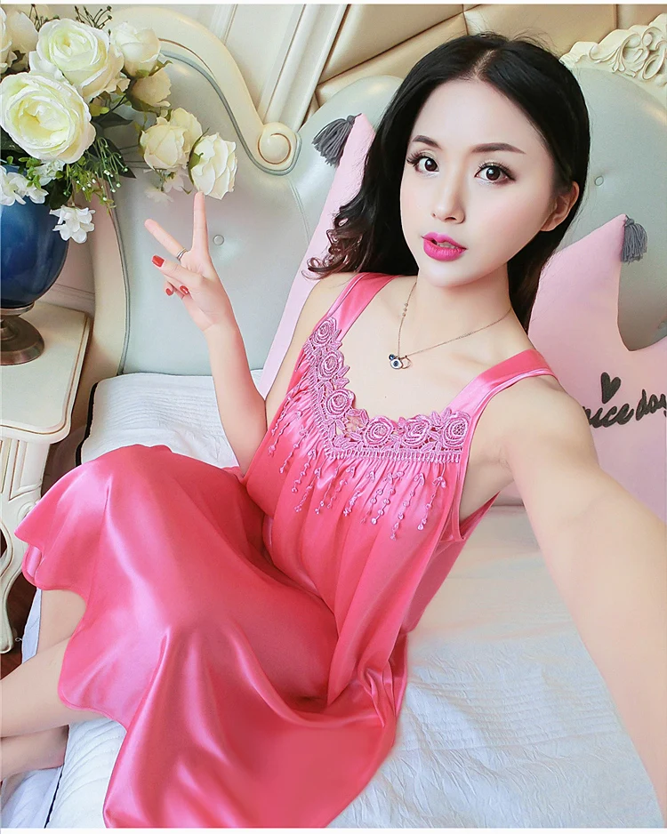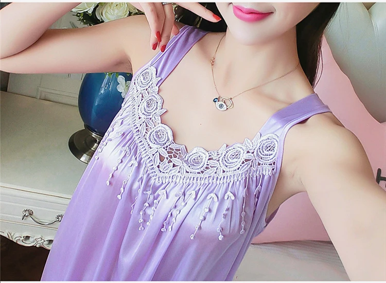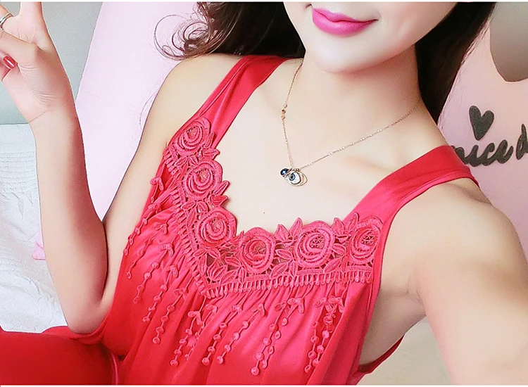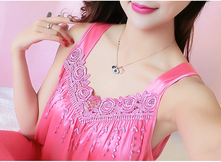 Большой размер 4XL Женская ночная рубашка Летняя ночная рубашка кружевная женская ночная рубашка Сексуальная Дамская атласная шелковая ночная рубашка без рукавов домашняя одежда для сна