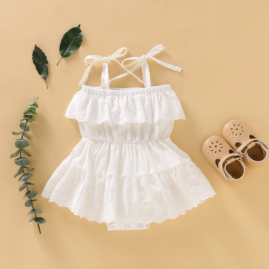 Kawaii/однотонная Одежда для новорожденных; Кружевной комбинезон без рукавов для маленьких девочек; Детская летняя повседневная одежда; Мягкий комбинезон для малышей