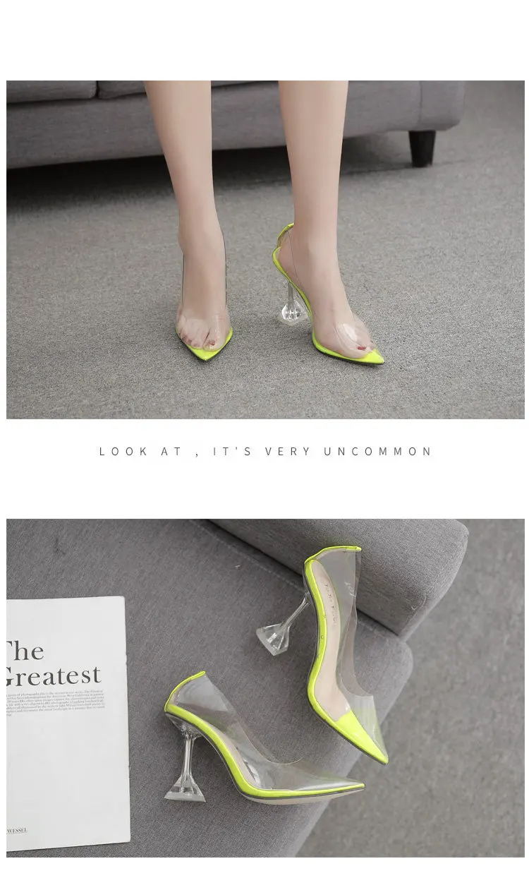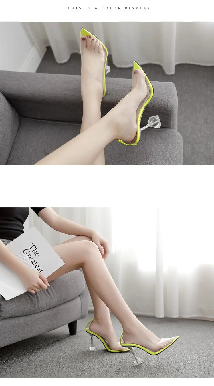 Прозрачные туфли-лодочки из пвх; Босоножки; Каблук из плексигласа; Шпильки; Высокий каблук; Острый носок; Женская обувь для вечеринок; Туфли-лодочки для ночного клуба