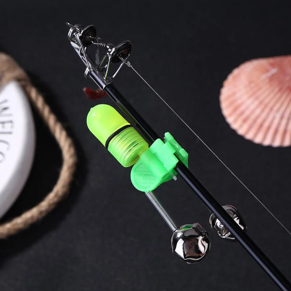 С двумя колокольчиками, сигнализацией от укуса, маленькие колокольчики будут звенеть, когда рыба поднимется на приманку.
