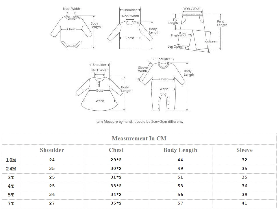 Size not means the age or the heigth ,all the size are measured by hand one by one ,before you make the order ,it's better to compare the length ,the sleeve long and the bust/chest with your girl clothes ,make sure the size you going to choose will be fit your baby perfectly ,thank you ! We will not pay for the charge for change the size ,please understand ,thank you .