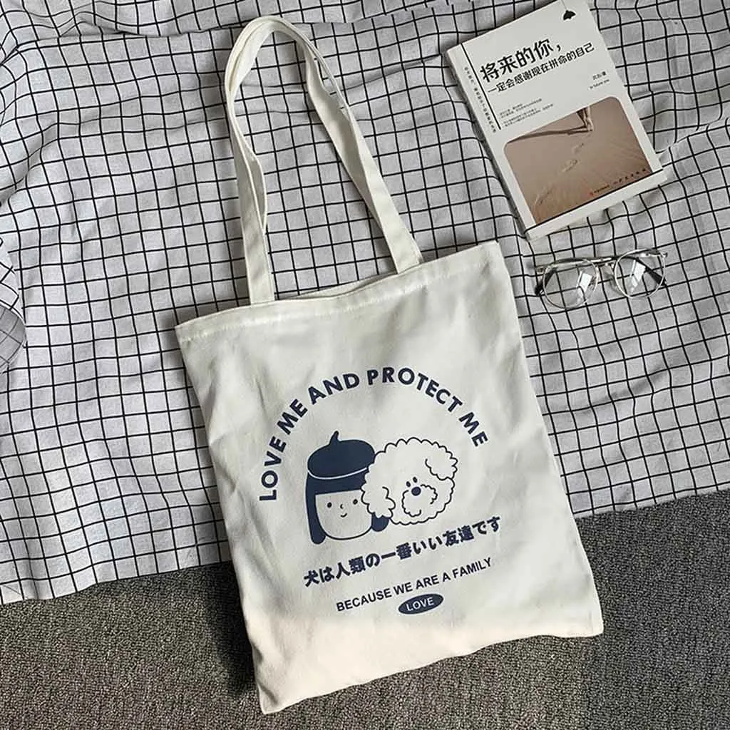Женская однотонная простая Холщовая Сумка с буквенным принтом, модная повседневная сумка через плечо