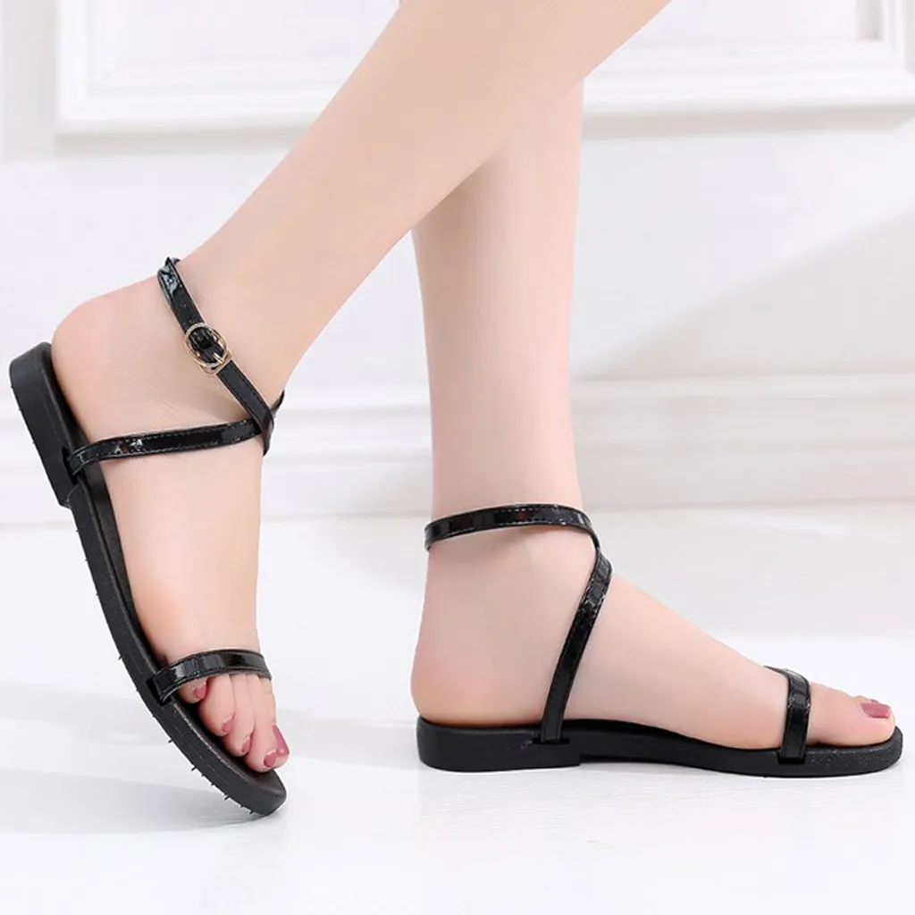 Модные женские туфли с открытым носком; повседневные пляжные шлепанцы на плоской подошве с перекрестными ремешками и пряжкой