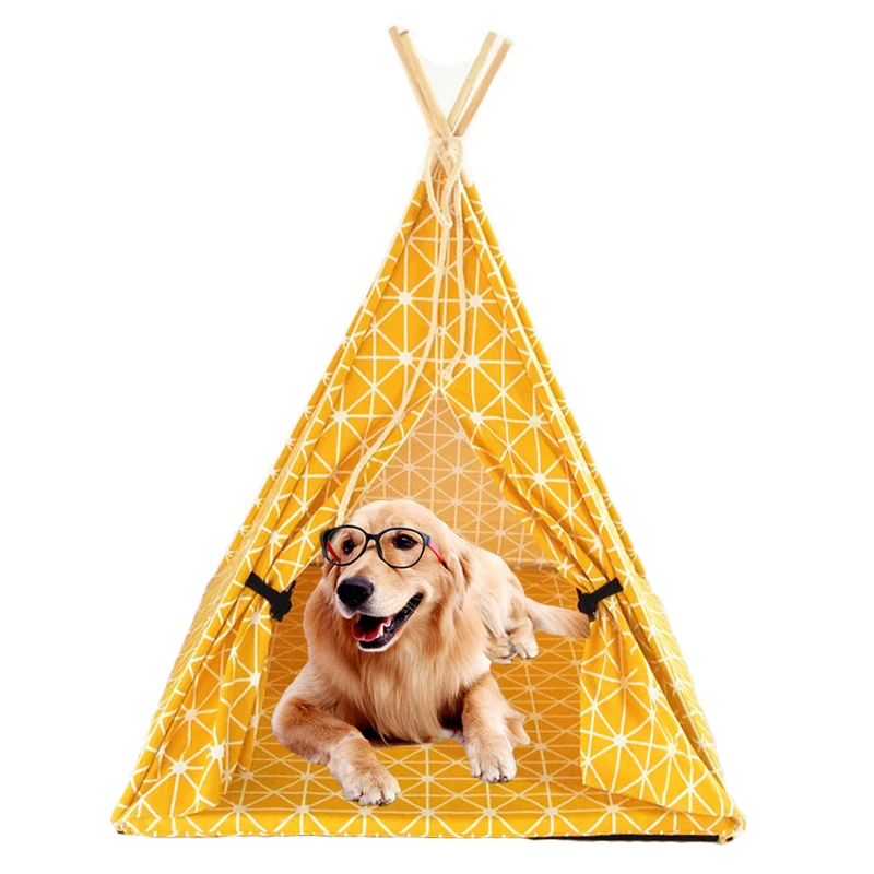 Домик для домашних животных с мягкой подушкой действует как декоративный акцент в любой комнате, обеспечивая при этом личное пространство для маленьких домашних животных, чтобы вздремнуть или спрятаться, где ваша собака и кошка могут чувствовать себя комфортно и комфортно. Подушка с пузырьками на дне может предотвратить скольжение вигвама.