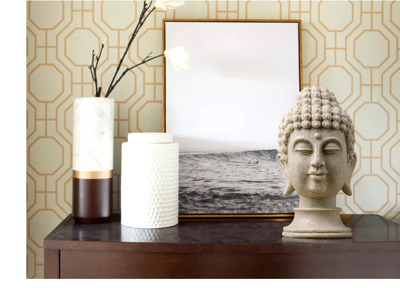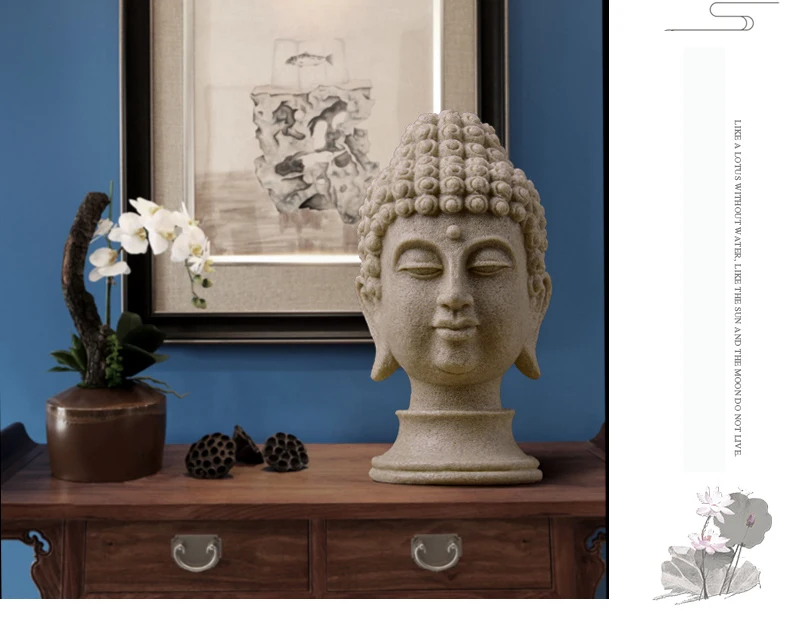Ручная работа статуэтки китайский Будда статуя для сада Смола большая голова Будды песчаник декоративная статуэтка украшение с изображением Будды