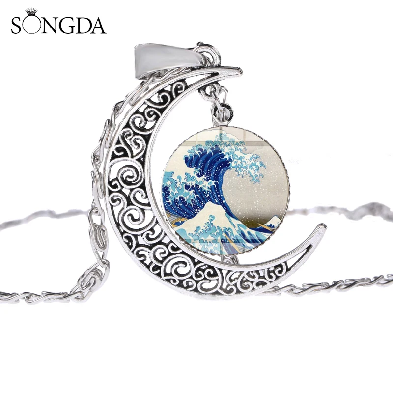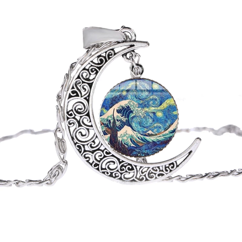Тип изделия: ожерелье с подвеской ручной работы из стекла с изображением Луны