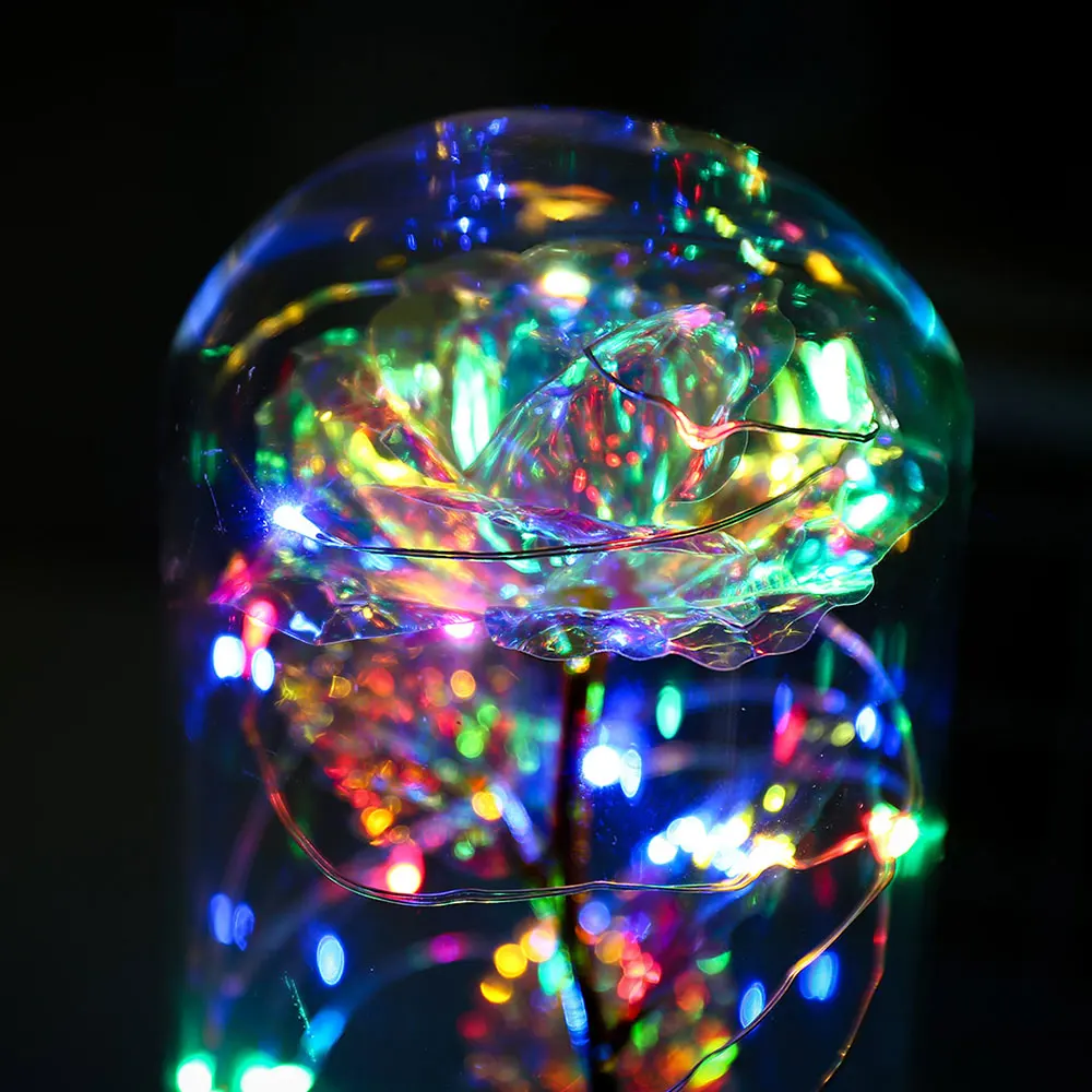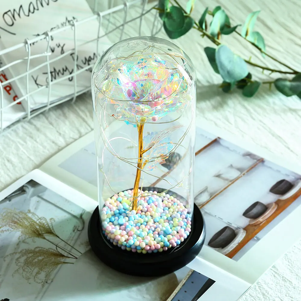 Имитация цветка розы с L-ED светильник в стеклянной обложке-это красивое украшение для домашнего стола в ночное время для создания романтической a-tmosphere, очень подходит для подарка на День святого Валентина или день рождения.