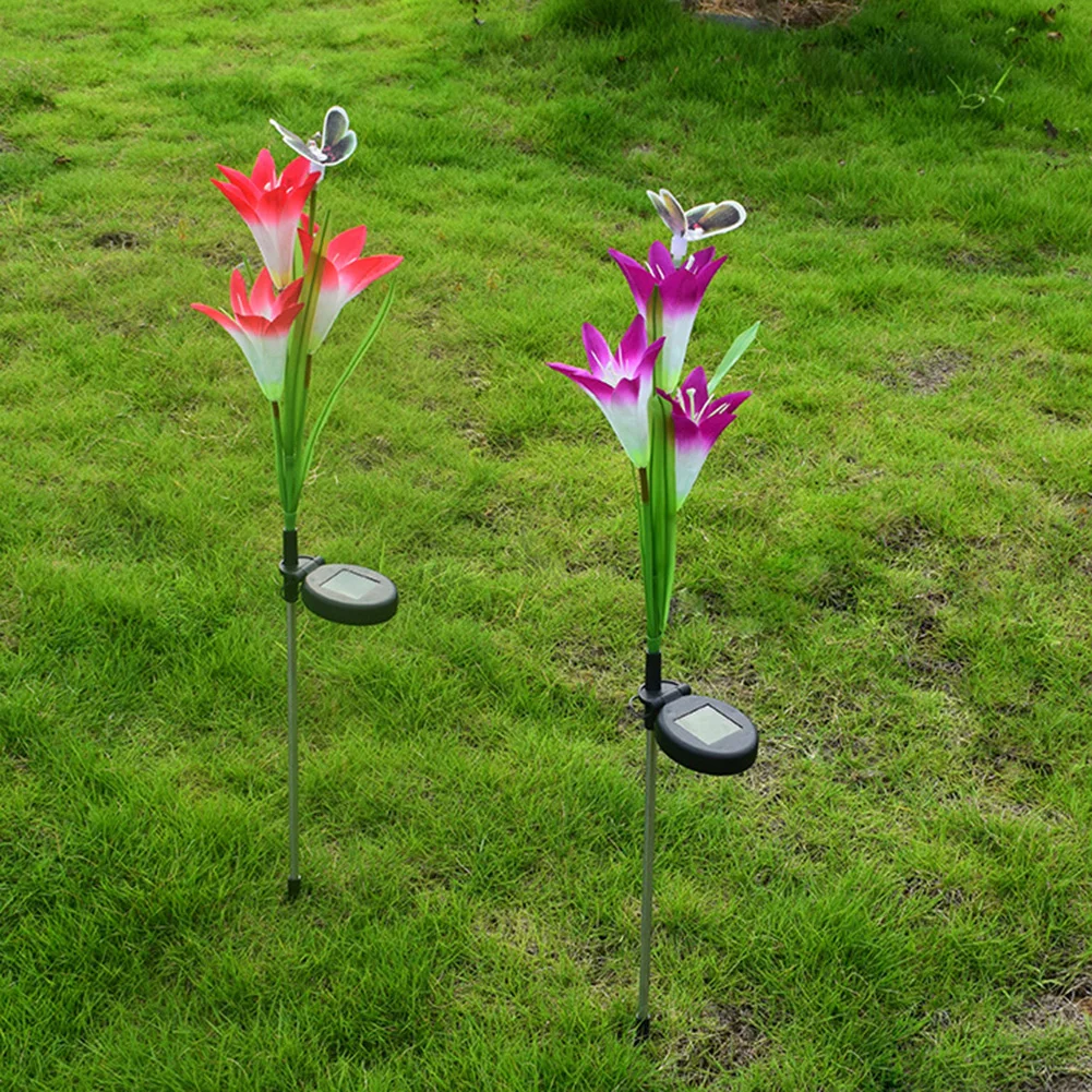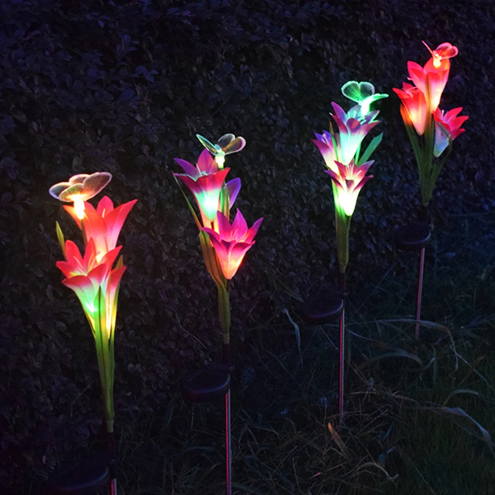Водонепроницаемый светильник с 3 лилиями для смены цветов на солнечной батарее