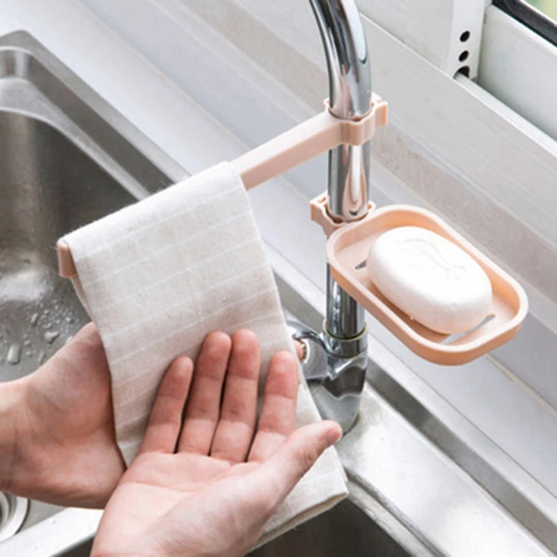 Подвесной стеллаж для хранения, держатель для хранения губки для ванной, кухни, кран, зажим для посуды, зажим для ткани, полка для слива сухих полотенец, органайзер розового цвета