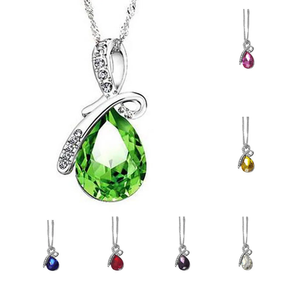 Покрытием с украшением в виде кристаллов в форме капли воды Ожерелье с подвеской различных цветов