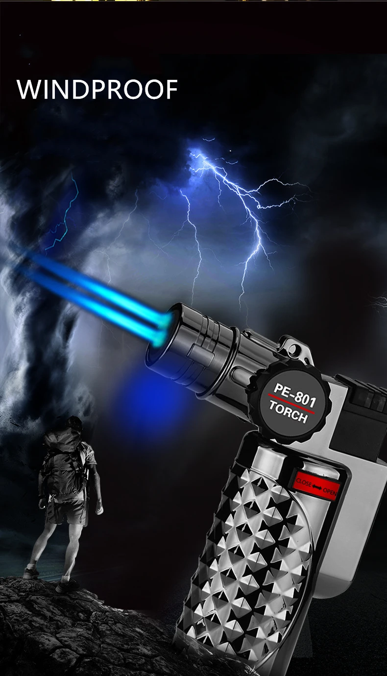 Зажигалка для сигар турбо компактная Бутановая 2 струйная Зажигалка 1300C ветрозащитная металлическая зажигалка для кухни для барбекю на открытом воздухе