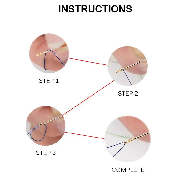 Микроскопическое отверстие в верхней части позволяет нитке проникать внутрь, что предотвращает ее выскальзывание. Подходит для пожилых людей со старыми глазами или с плохими глазами.