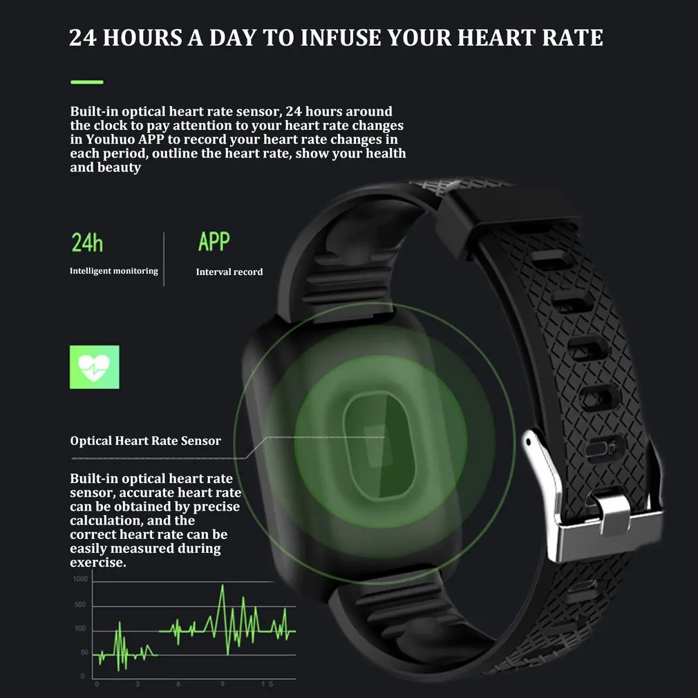 4. встроенный оптический датчик частоты сердечных сокращений, 24 часа в сутки, чтобы обратить внимание на изменения частоты сердечных сокращений, записывайте изменения частоты сердечных сокращений каждый раз в приложении Youhuo, указывайте частоту сердечных сокращений, покажите свое здоровье и красоту.