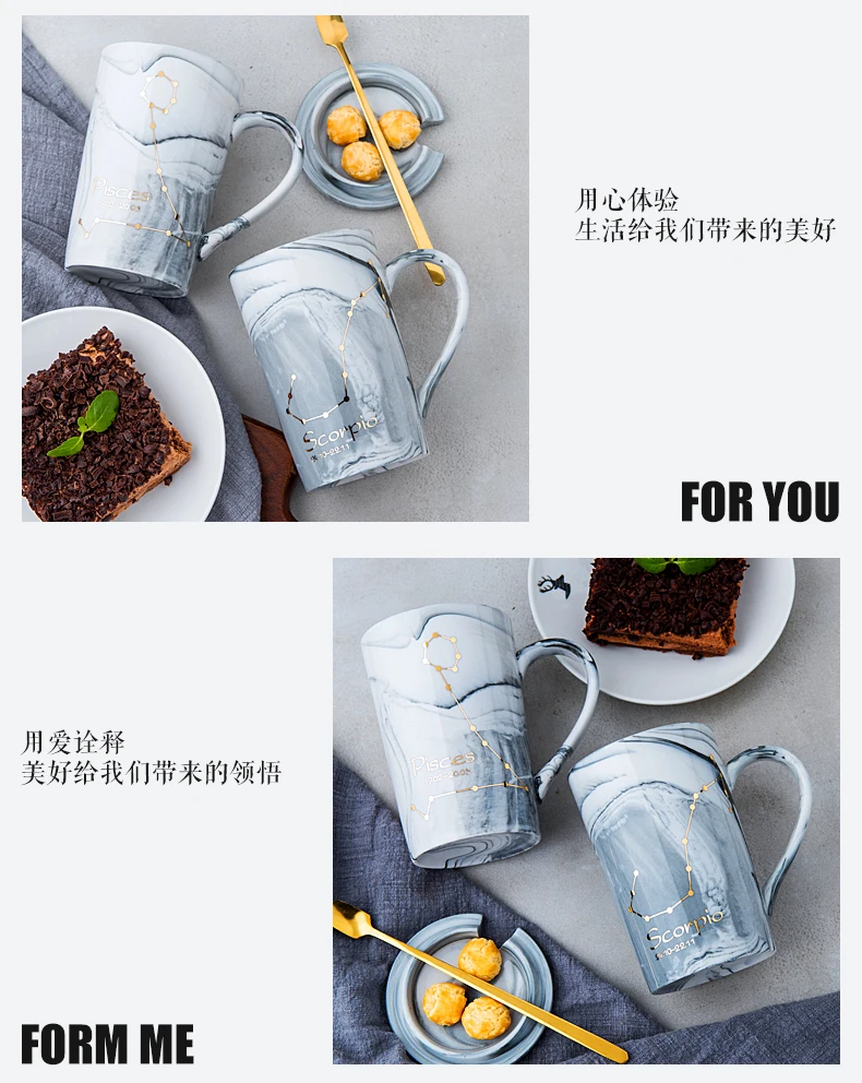 Креативная Скандинавская керамическая чашка, индивидуальная тенденция, бытовая чашка для молока, созвездие, Мужская кружка с крышкой, ложка, кофейная чашка бойфренда