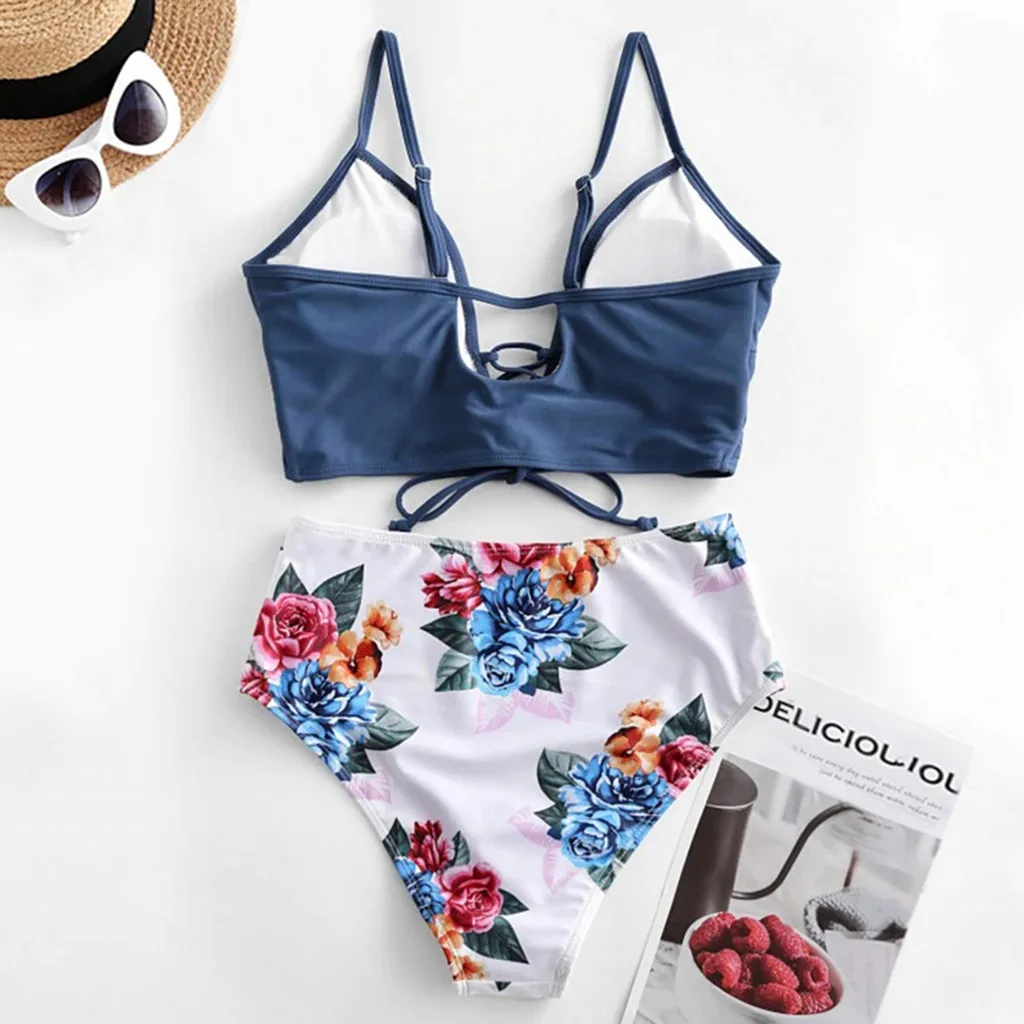Женский сексуальный комплект бикини из двух предметов, купальник Танкини на шнуровке с цветочным принтом Информация об изделии