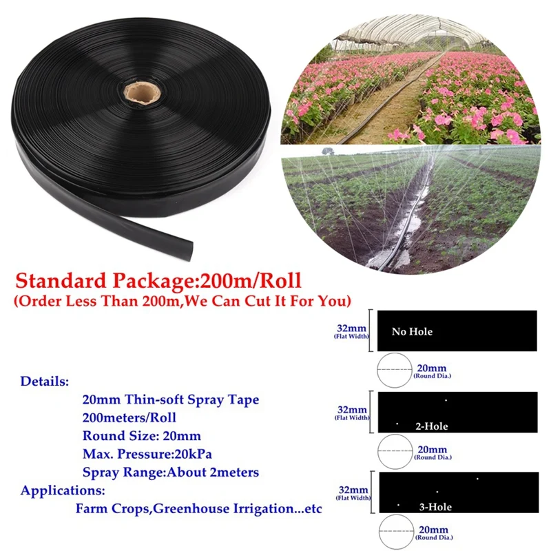 Розничная продажа, 100 м ~ 5 м, 3/4 дюйма Φ20 мм, тонкая и мягкая распылительная лента, микроорошающий шланг, сельскохозяйственный спрей для орошения, капельная лента, гибкая водопроводная труба