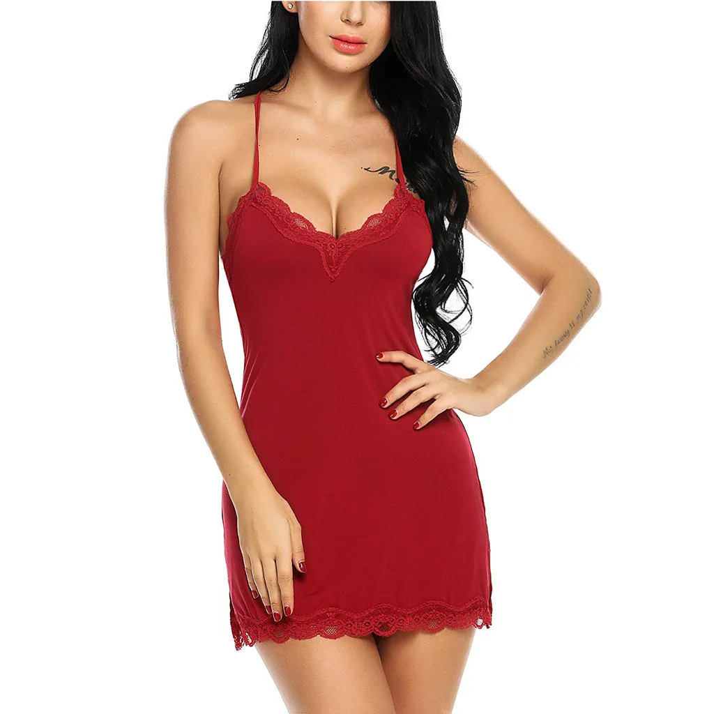 Нижнее белье Ночная рубашка кружевная Сексуальная сорочка Ночная сорочка бебидолл мягкая одежда для сна S-XXL