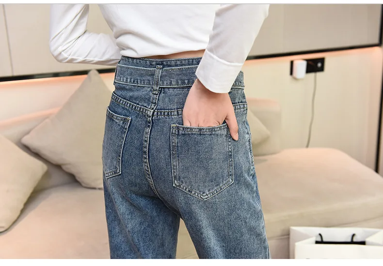 Джинсы с высокой талией для женщин, новинка 2020, корейские свободные шаровары, Джинсы бойфренда для женщин, большие размеры, vaqueros mujer
