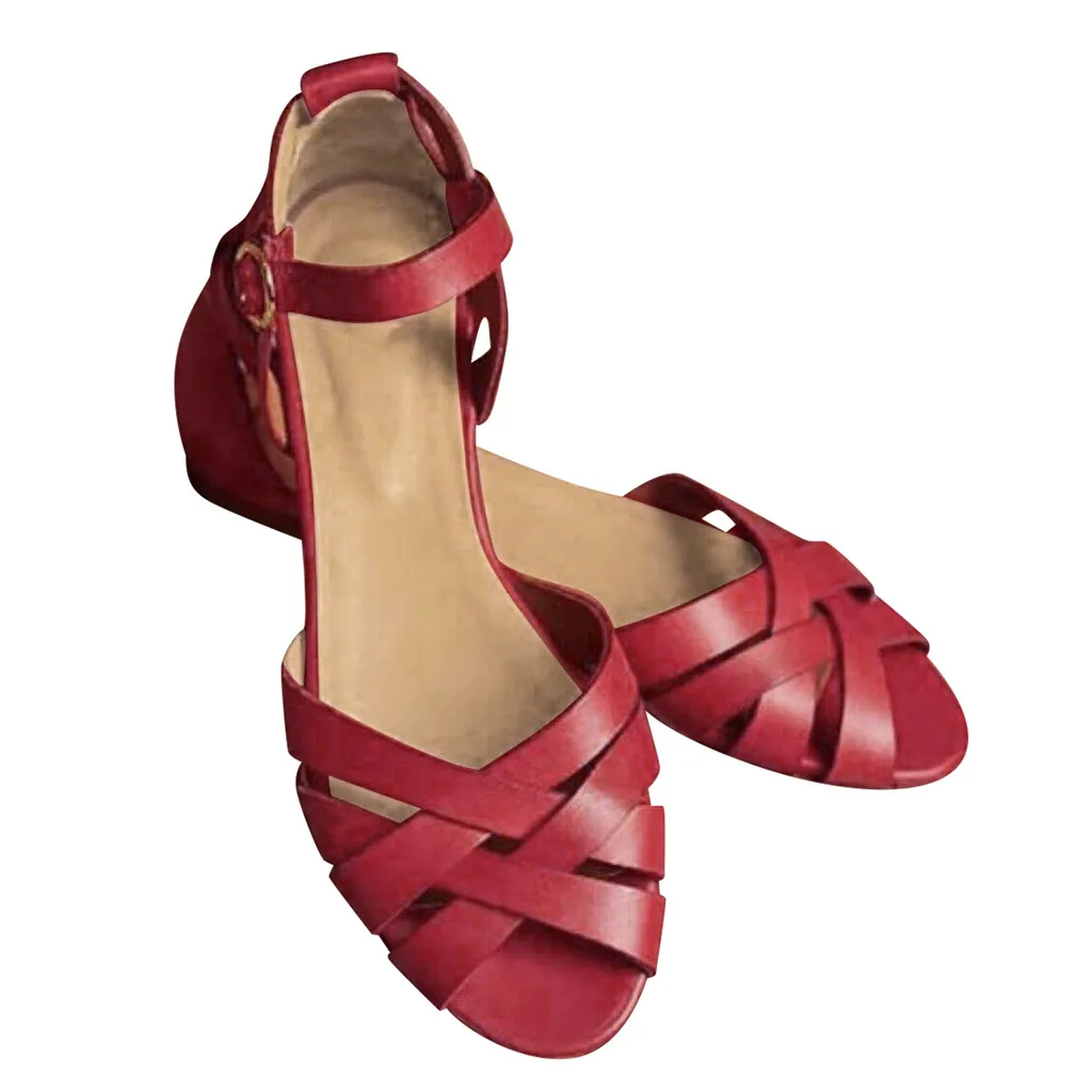 Женская Повседневная обувь; летние римские сандалии с открытым носком и ремешком на щиколотке с пряжкой на плоской подошве
