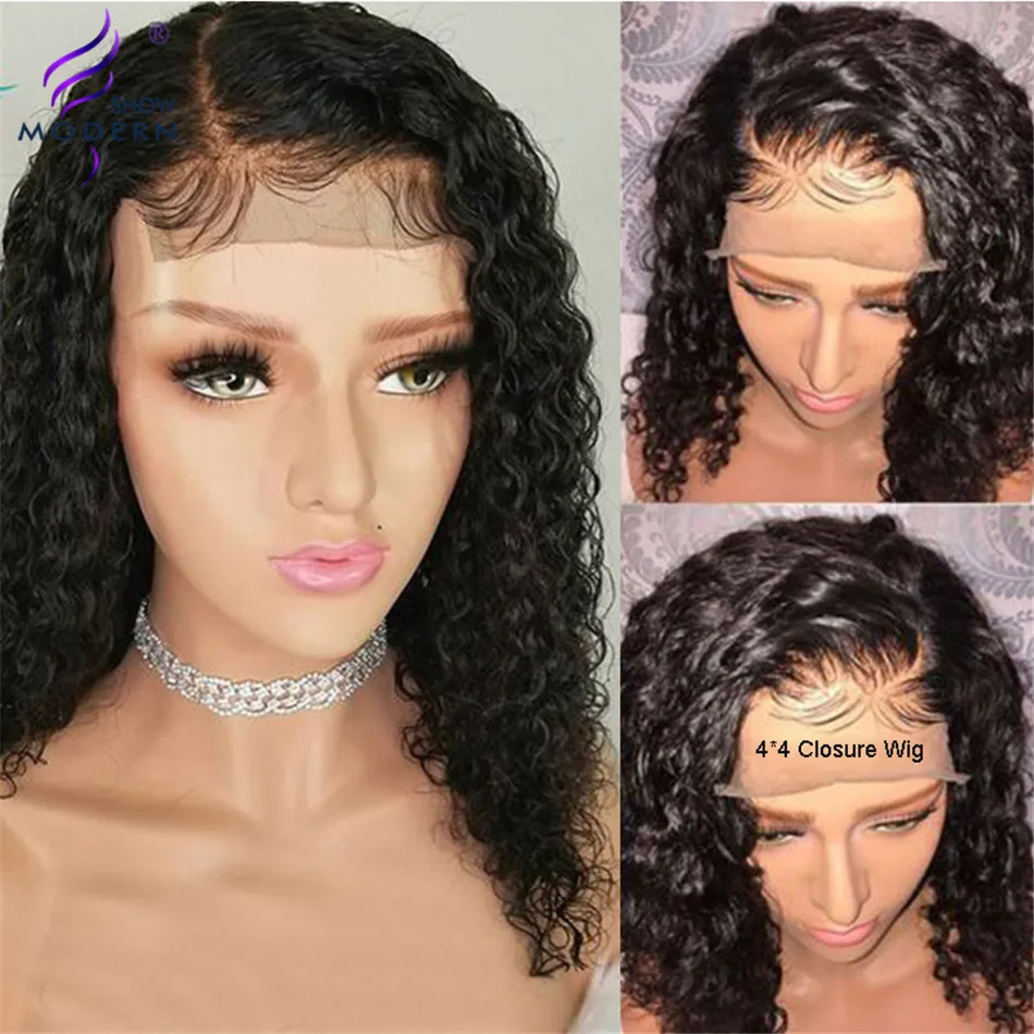 Современная Волна волос 4x4 кружева закрытие парик Peruvain Remy человеческие волосы парики предварительно сорванные 30 дюймов перруке натуральный цвет 150% 10-30 дюймов в магазине