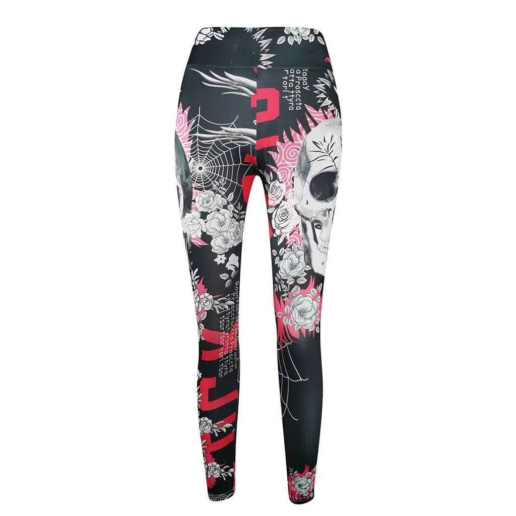 Женские обтягивающие штаны с принтом черепа, с высокой талией, штаны для йоги, модные бесшовные леггинсы для фитнеса, женские спортивные обтягивающие спортивные штаны, 2019