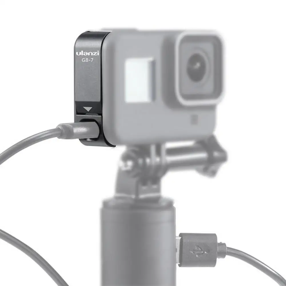 Крышка батарейного отсека со съемным адаптером для зарядного устройства Type-C металлический корпус для GoPro Hero 8 черный