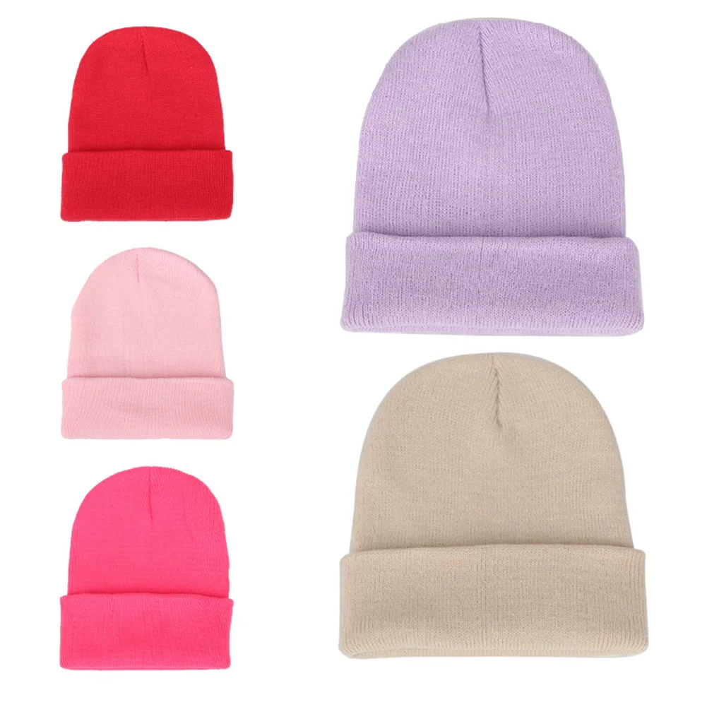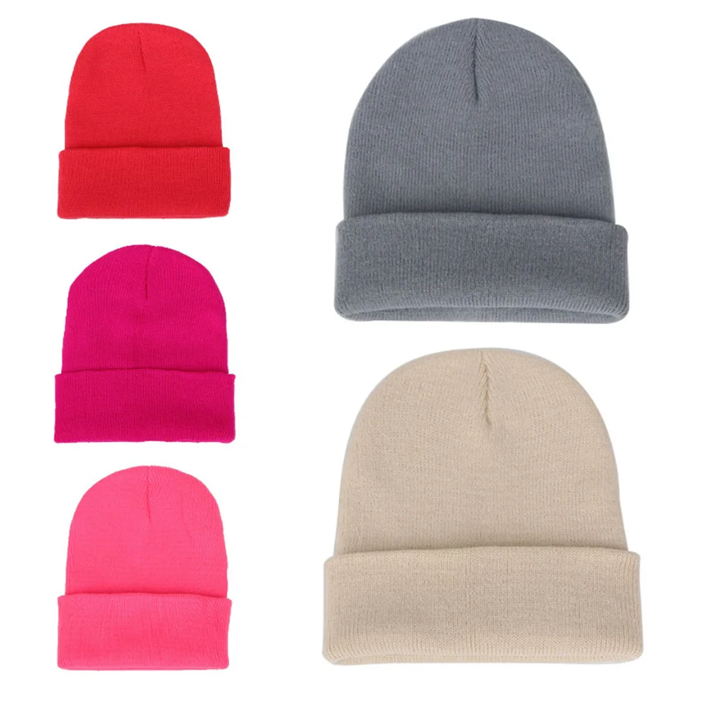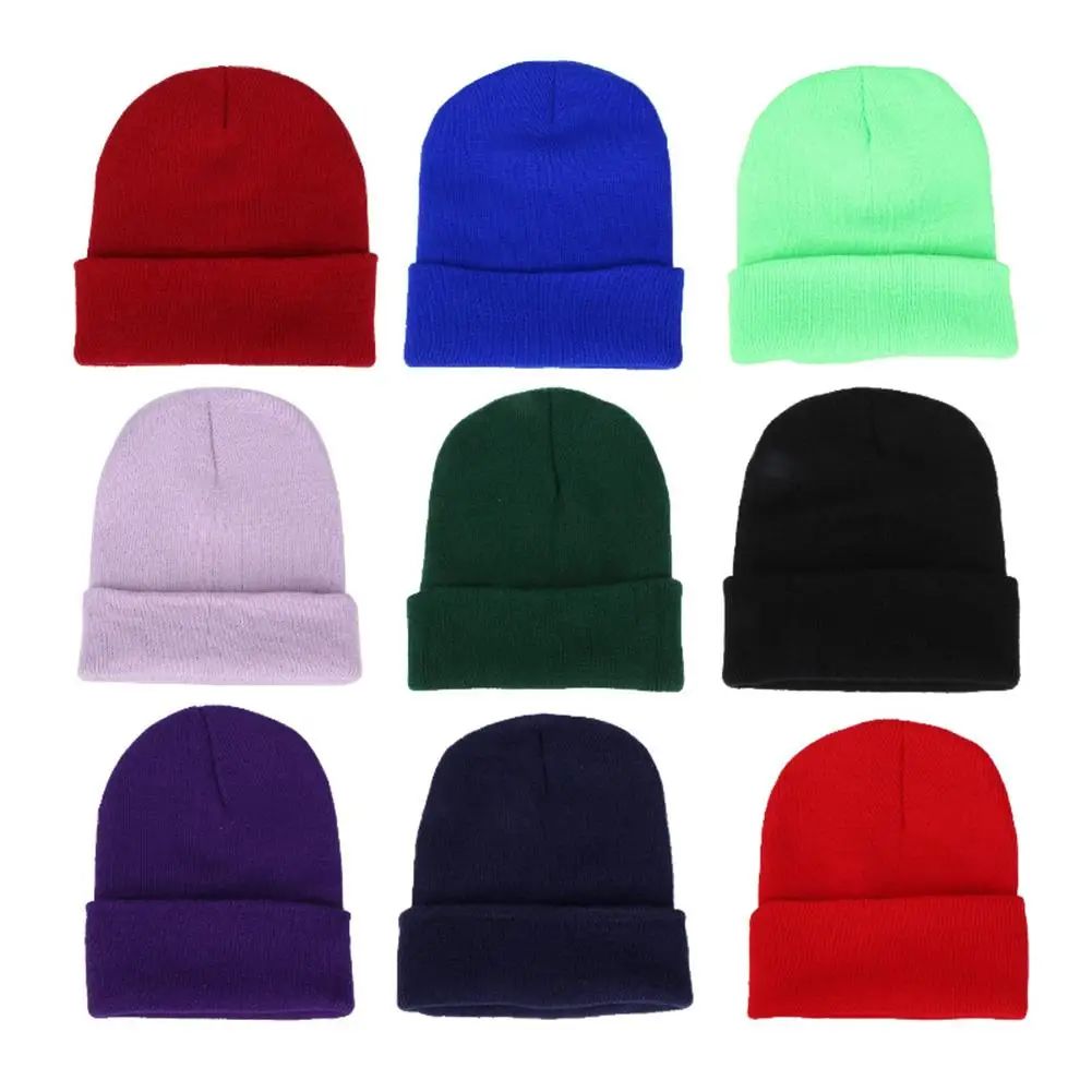 Мужская и женская однотонная теплая шерстяная вязаная шапка флуоресцентная шапка с манжетой