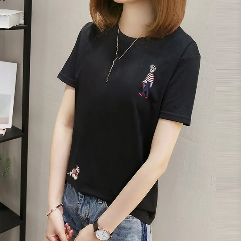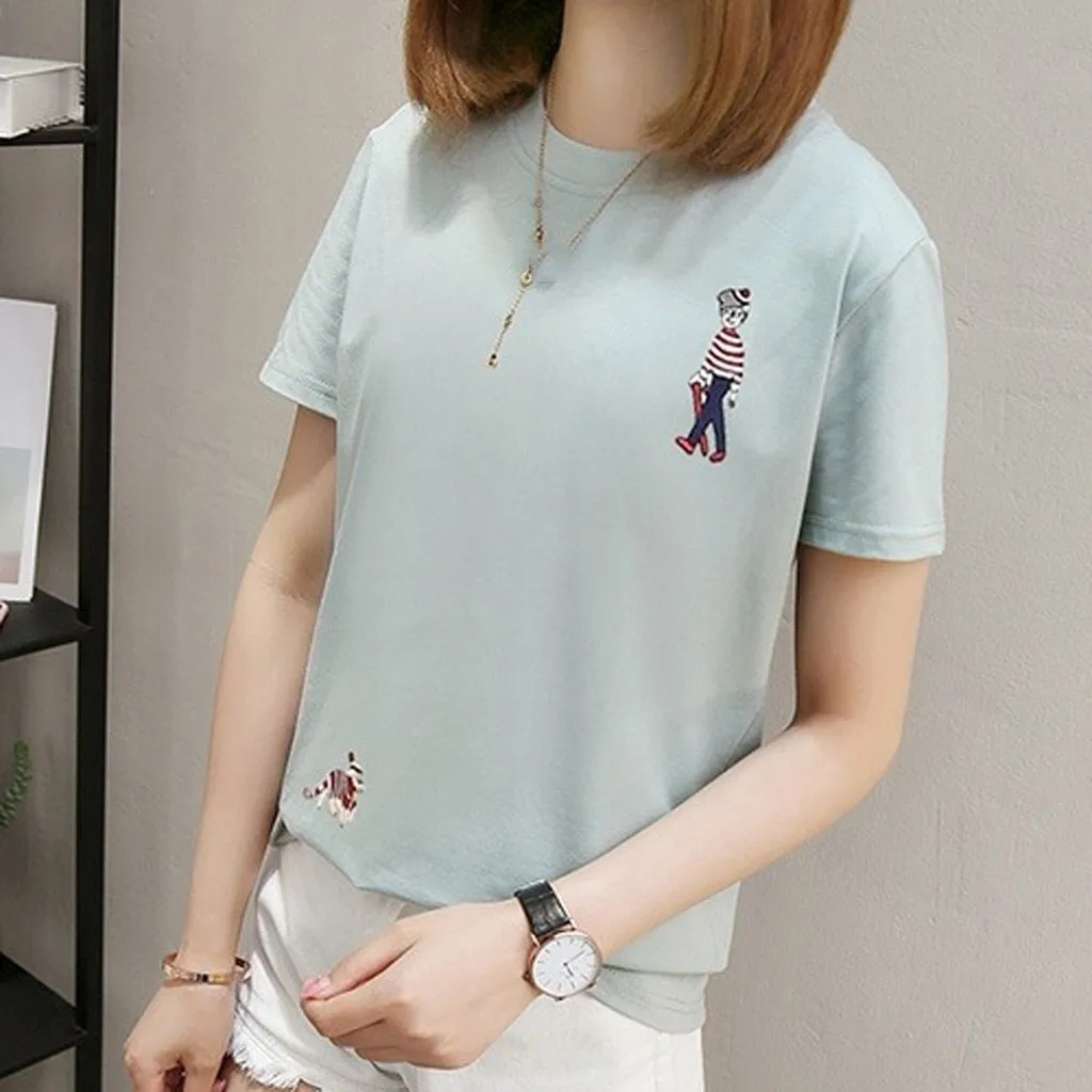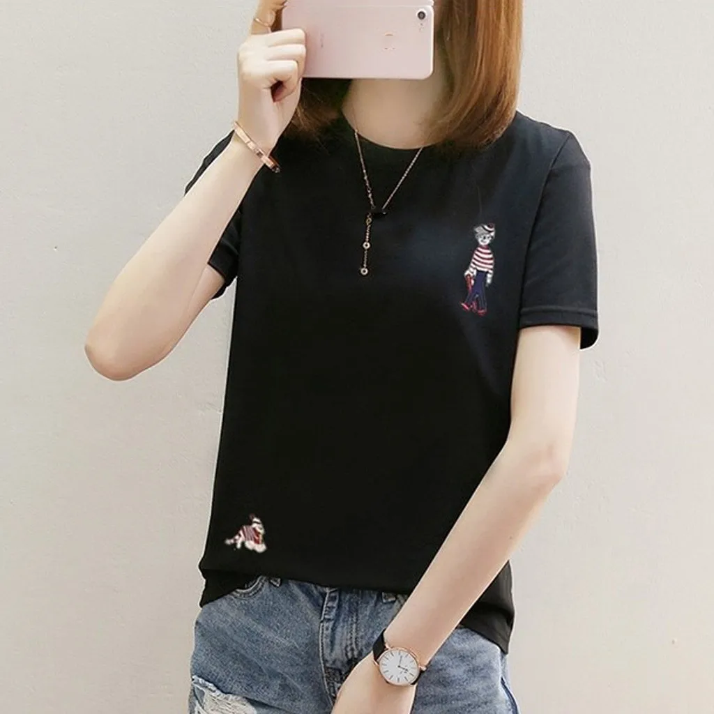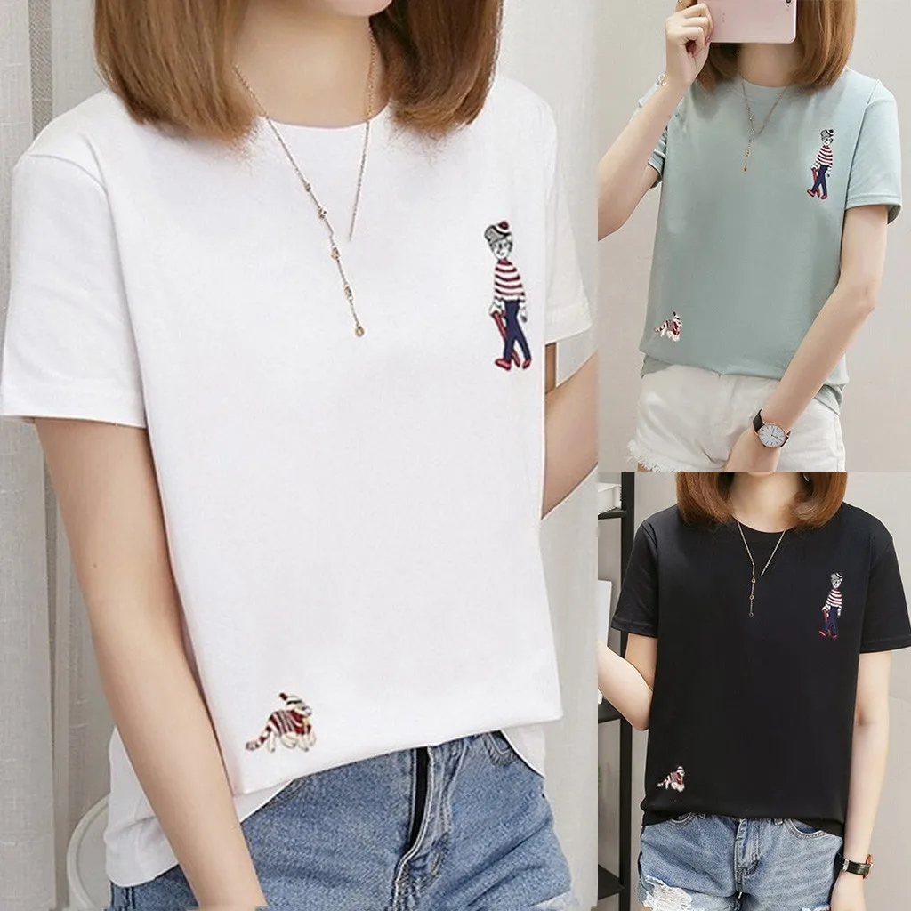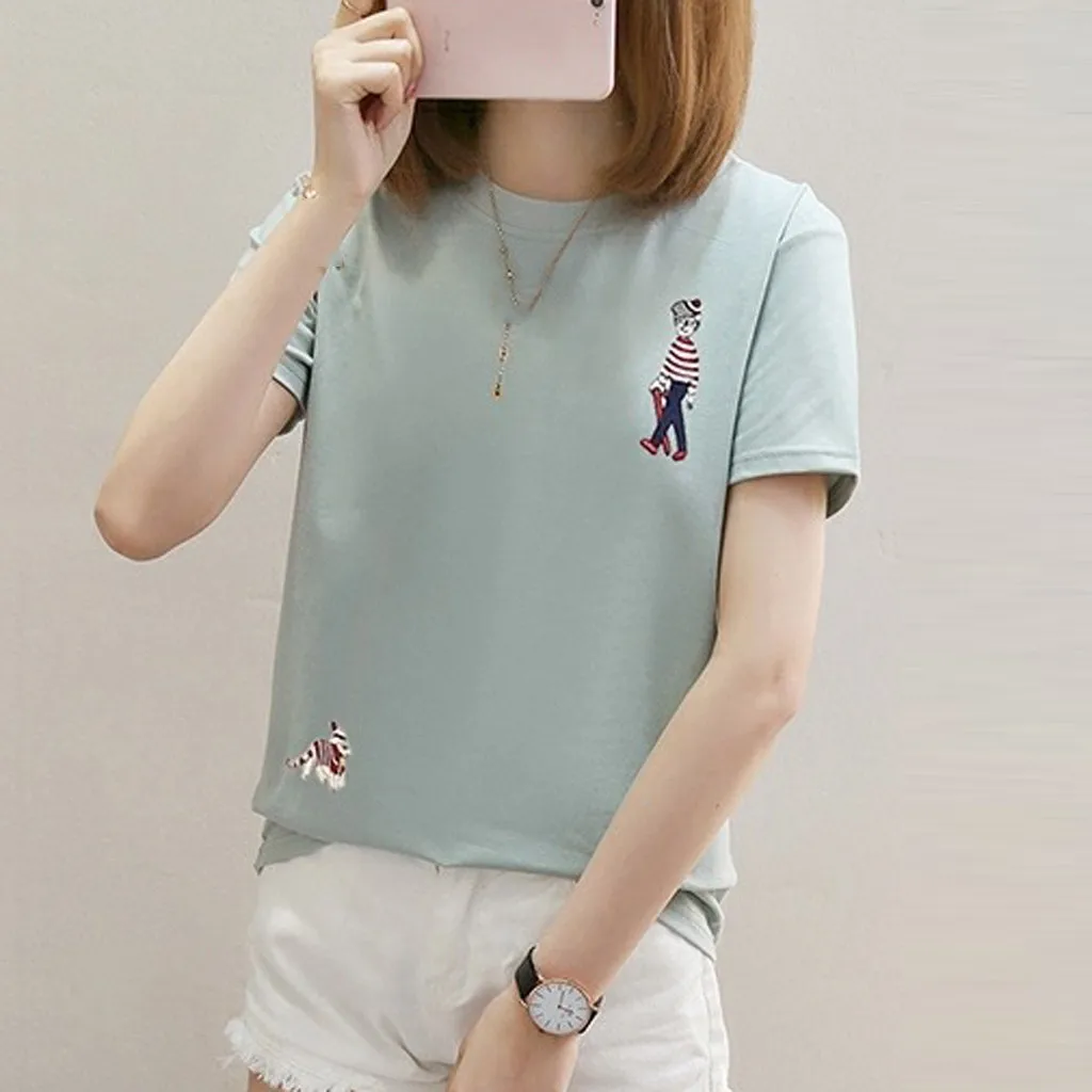 Особенности: Повседневная Блузка с короткими рукавами, с круглым вырезом, футболка, женские топы, осень и весна.
