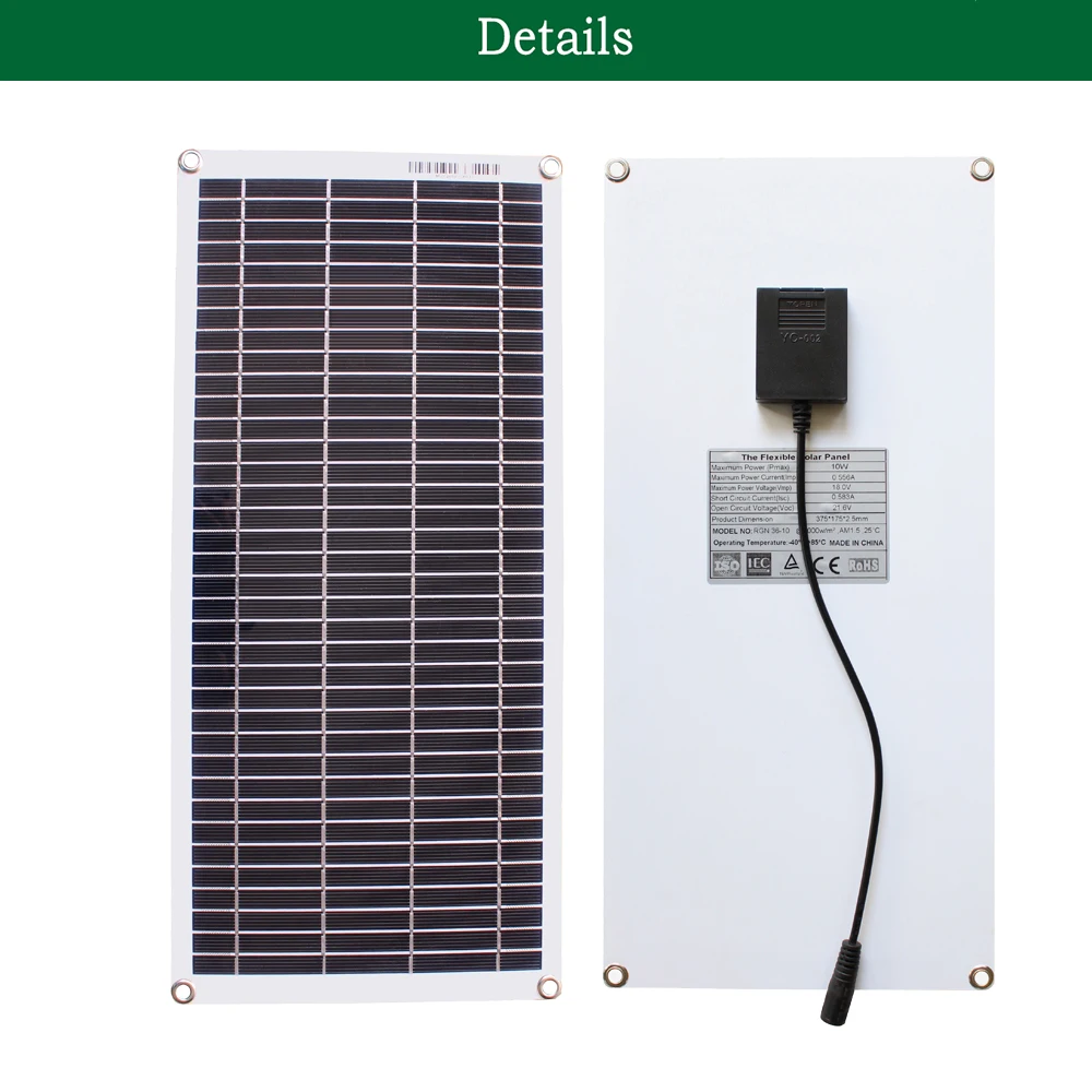 Полугибкая солнечная батарея 10 Вт 18 в, портативная солнечная панель с кабелем постоянного тока 5521 для автомобильного зарядного устройства 12 В